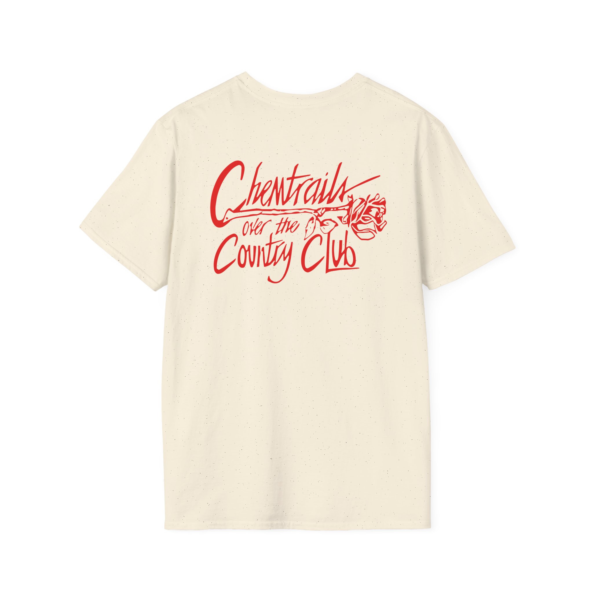 This lightweight, classic-fit tee carries a vintage tour-shirt look with hand-lettered script reading “Lanadelrey Chemtrails Over The Country Club” Soft ring-spun cotton and smooth printing make the graphic sit cleanly on the chest. Wear it to backyard shows, late-night drives, or when you want to bring a bit of road-worn Americana to a simple outfit. The crew neckline and tubular knit keep the silhouette neat, while shoulder tape and a ribbed collar hold the shape after many washes. It’s breathable, low-profile, and made to age with you—subtle black flecks appear on the Natural color for a lived-in feel.