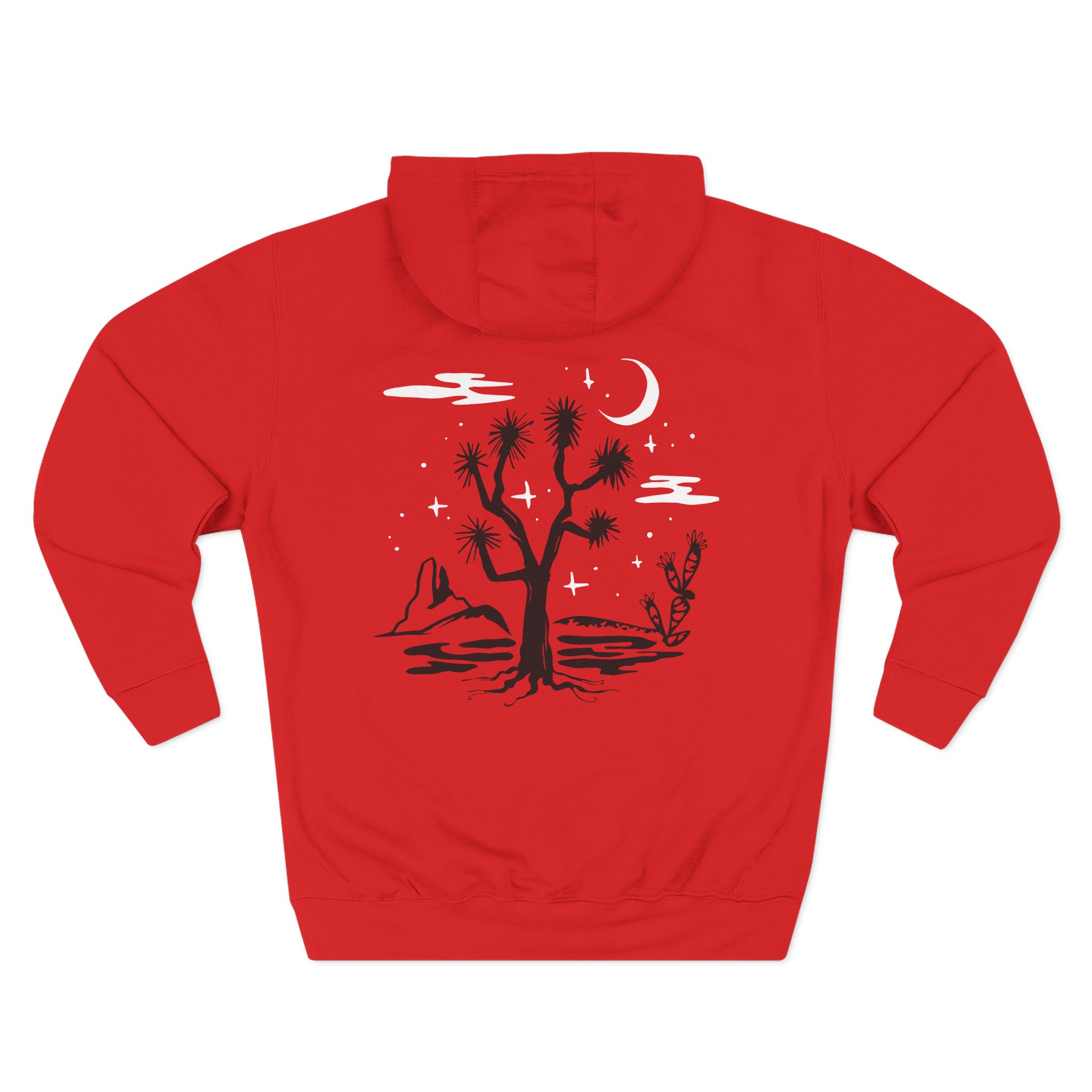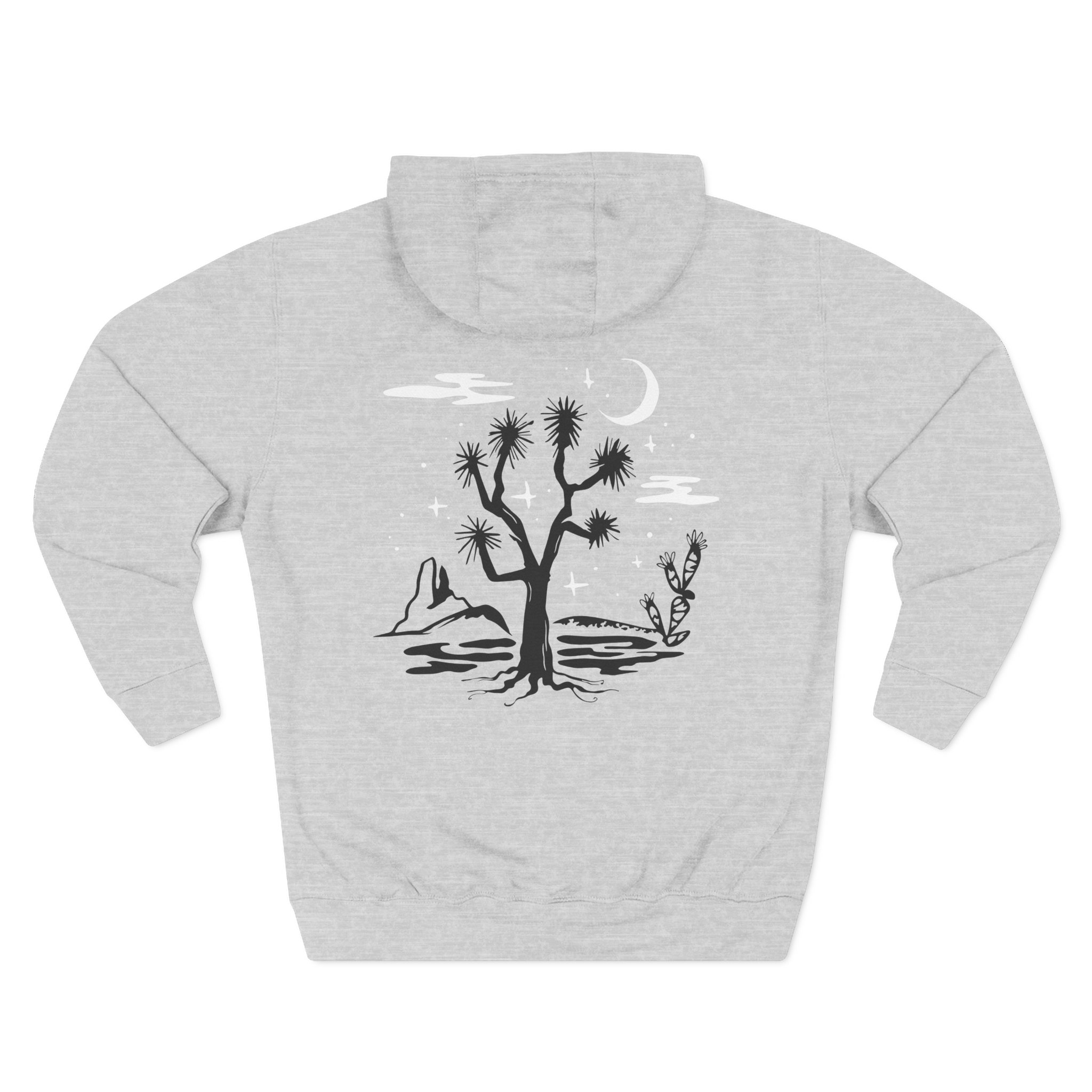 This LSDREAM Joshua Tree charcoal fleece hoodie settles into your rotation like an old friend — soft, weighty, and quietly bold. The three-panel hood and adjustable drawcord frame your face on blustery mornings. A roomy kangaroo pocket keeps hands warm and holds what you need for a quick walk or a late-night errand. The front artwork sits low and distressed, giving the piece a lived-in, slightly rebellious vibe that works whether you’re heading to a gig, a practice, or a coffee run. Built with sturdy double-needle seams and a soft 3-end fleece interior, it wears well over years of wear and washes while keeping its shape.