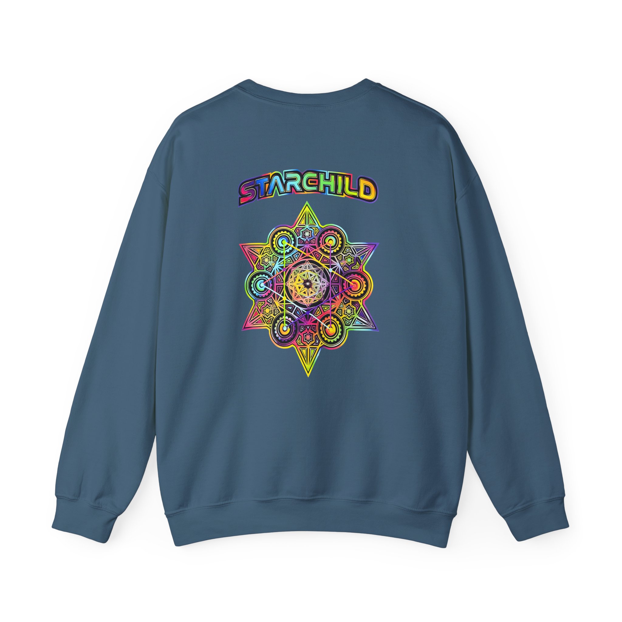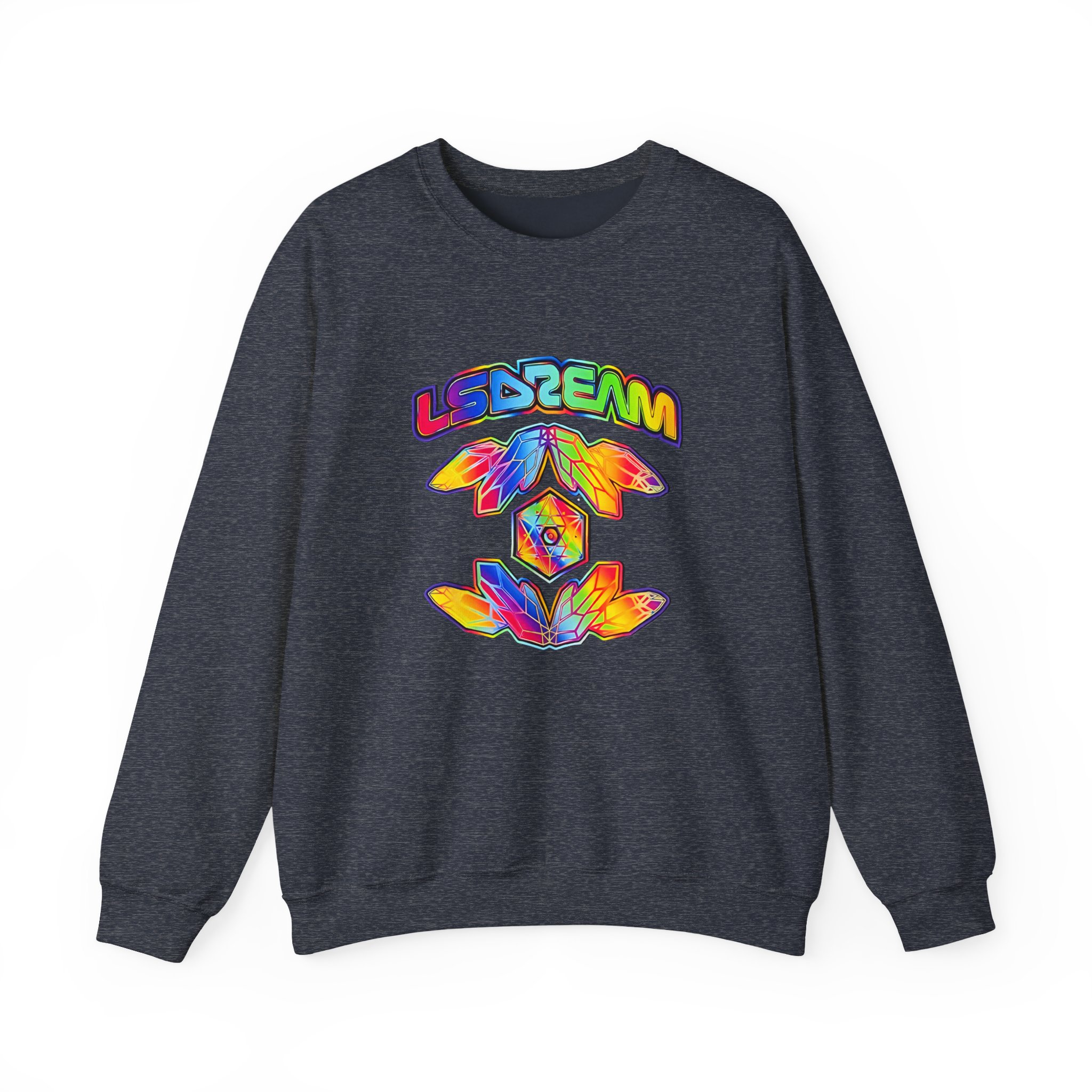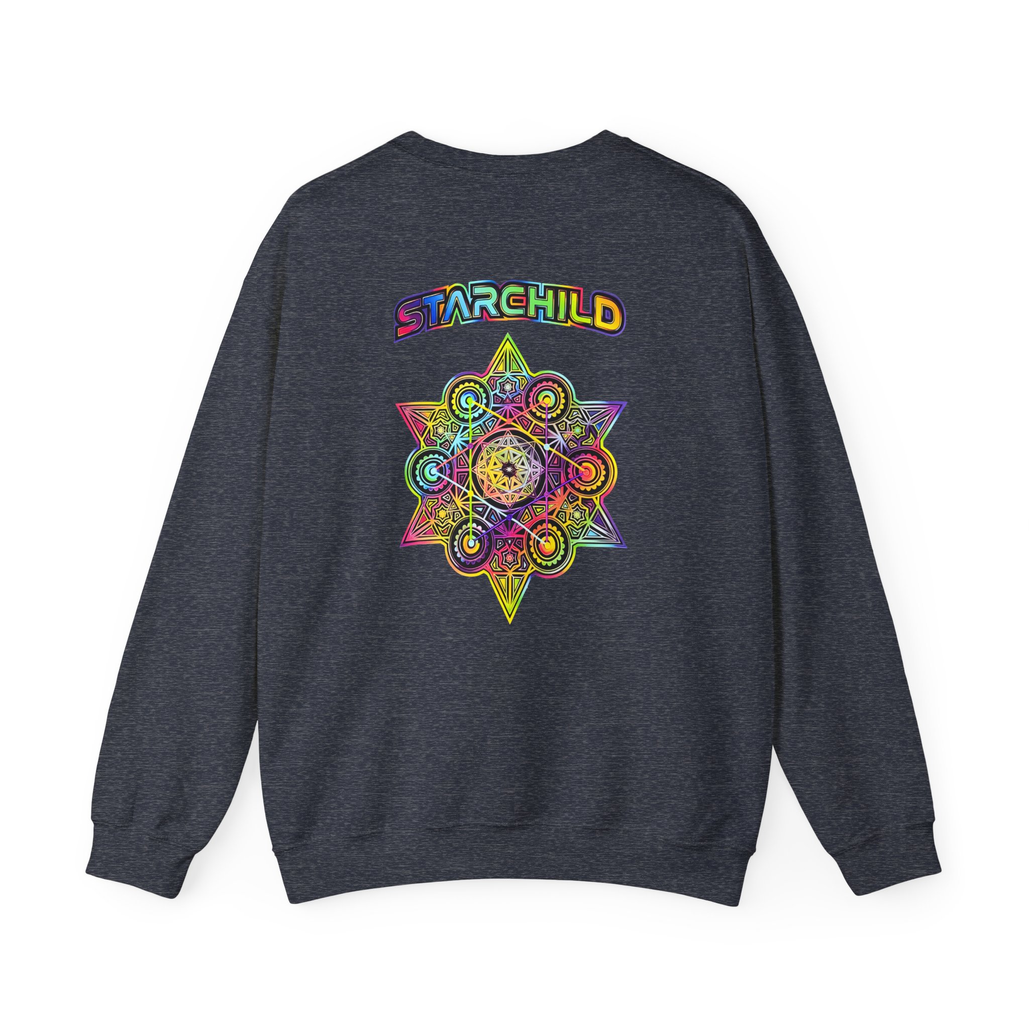 The Gildan 18000 sweatshirt is a LSDREAM Starchild unisex heavy blend crewneck made from a 50/50 cotton-polyester fabric, combining softness with lasting durability. Its smooth surface supports crisp, vibrant prints and embroidery, while the ribbed-knit collar and reinforced cuffs help it keep its shape over time. A seamless body design reduces irritation and adds to overall comfort. Practical, sturdy, and print-friendly, the Gildan 18000 sweatshirt remains a top choice for custom apparel.