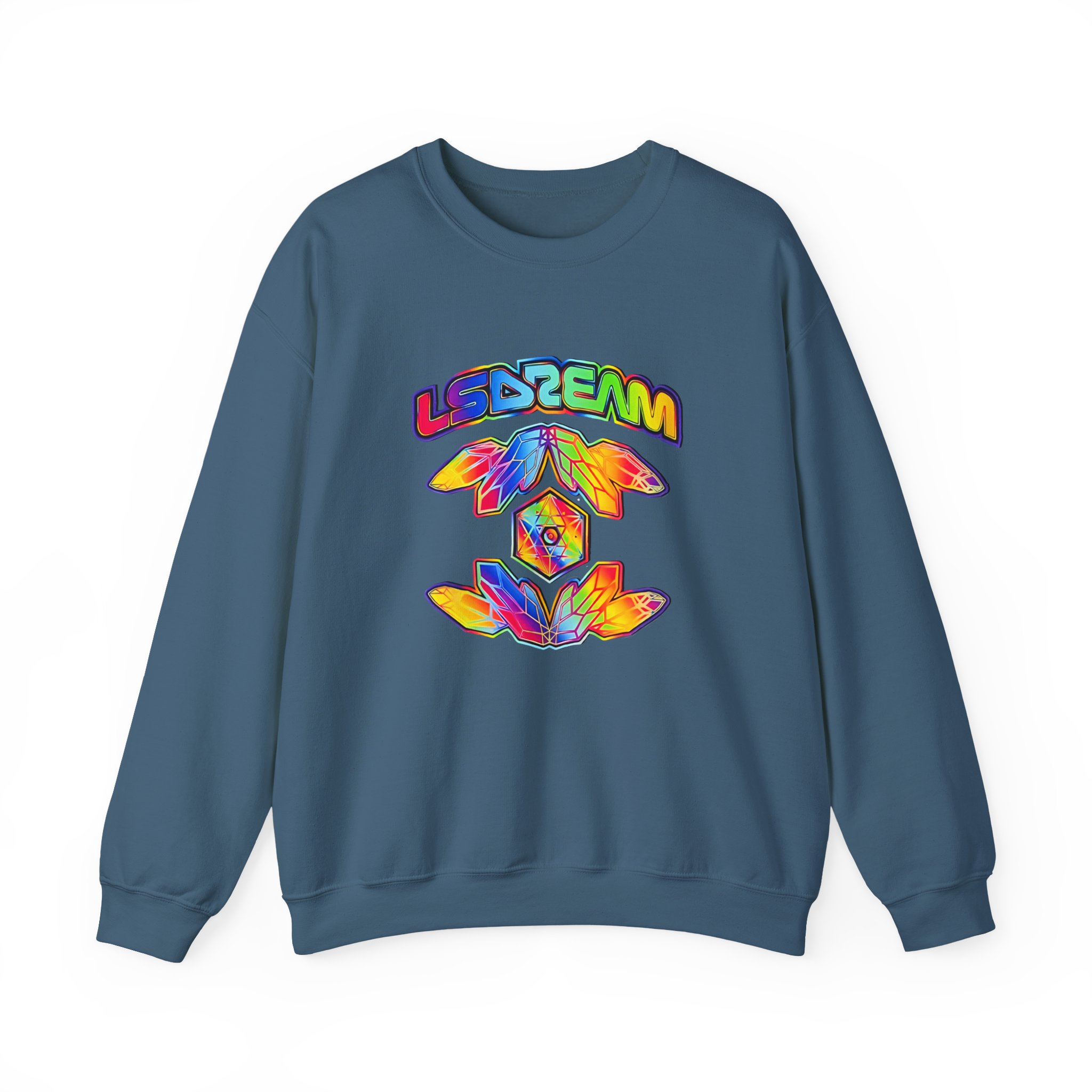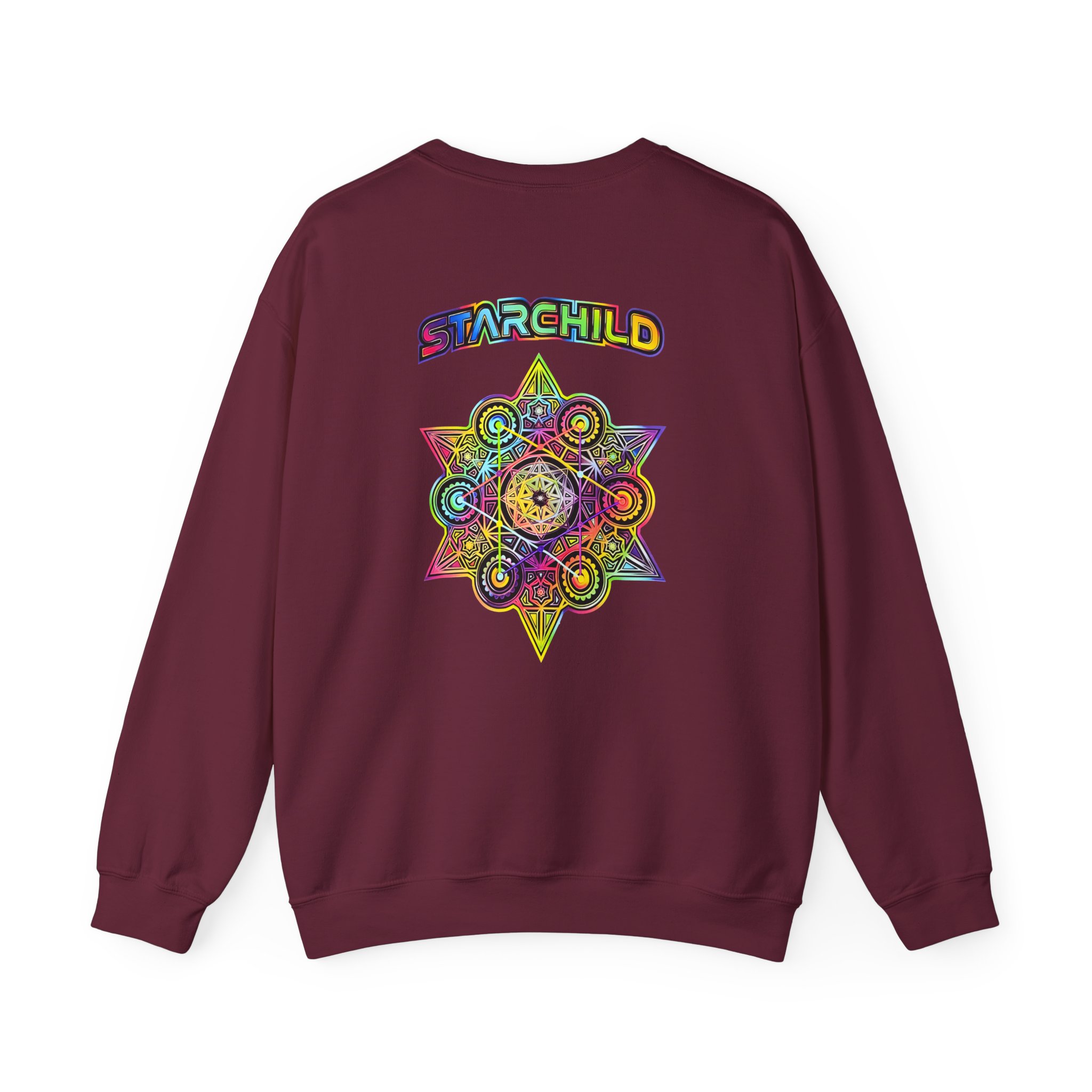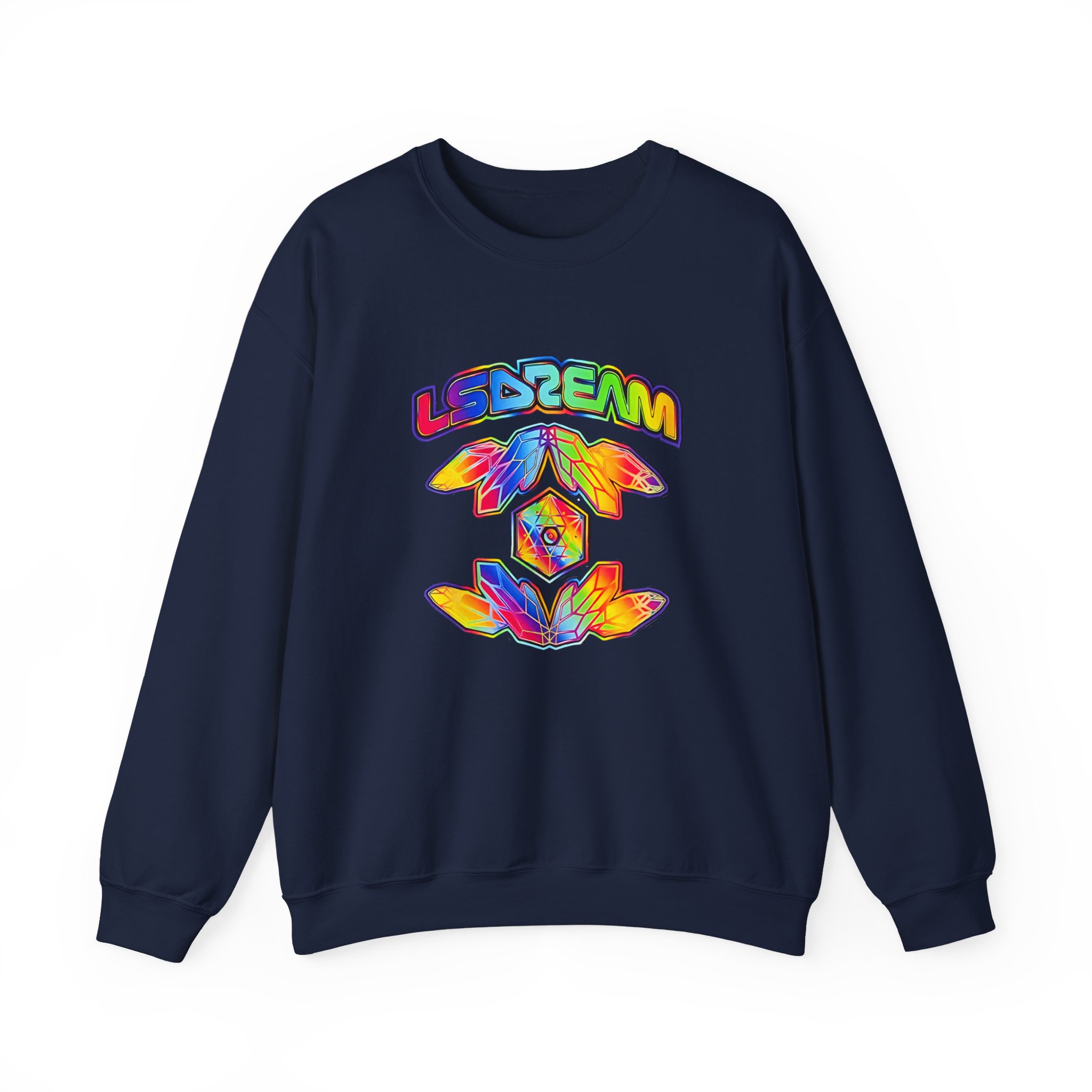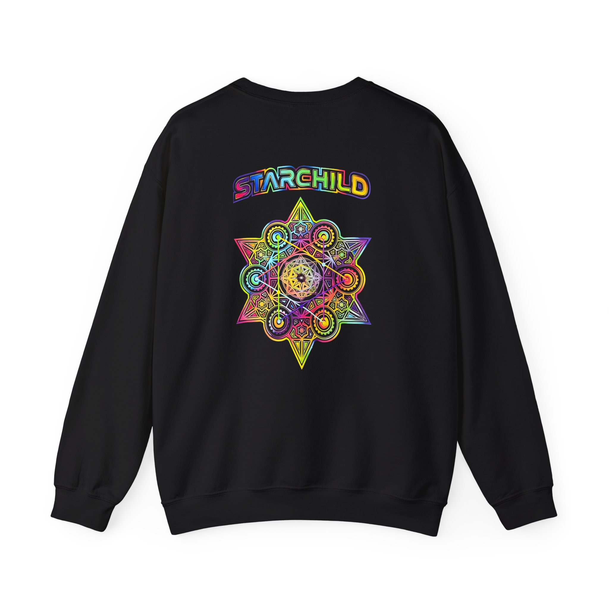 The Gildan 18000 sweatshirt is a LSDREAM Starchild unisex heavy blend crewneck made from a 50/50 cotton-polyester fabric, combining softness with lasting durability. Its smooth surface supports crisp, vibrant prints and embroidery, while the ribbed-knit collar and reinforced cuffs help it keep its shape over time. A seamless body design reduces irritation and adds to overall comfort. Practical, sturdy, and print-friendly, the Gildan 18000 sweatshirt remains a top choice for custom apparel.