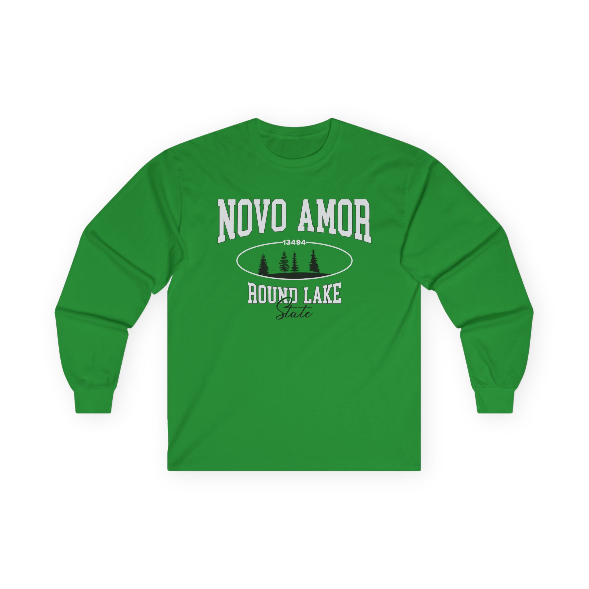 This Novo Amor Round Lake State long-sleeve tee brings vintage concert vibes to everyday wear. Soft yet substantial cotton and a classic, slightly boxy fit create a lived-in feel that layers well under jackets or stands alone. The front art—bold mirrored sunglasses, a painted blue nose and red lips—feels like a snapshot from an ’80s tour poster. Wear it to record-store hangs, low-key gigs, or when you want a guarded nod to music history without shouting. It’s the kind of shirt that feels like it already remembers a hundred nights out.
