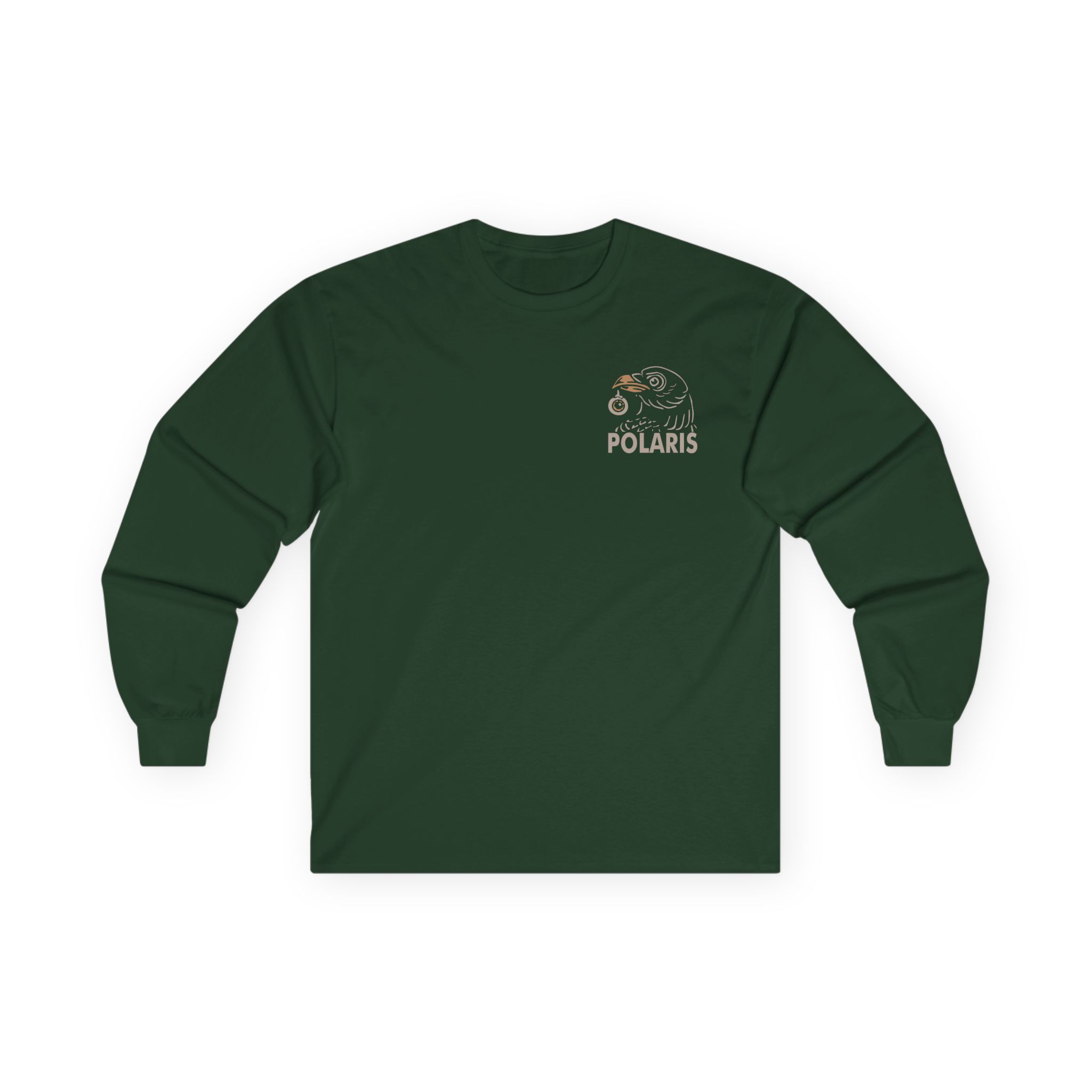 This Polaris Crows long-sleeve tee brings vintage concert vibes to everyday wear. Soft yet substantial cotton and a classic, slightly boxy fit create a lived-in feel that layers well under jackets or stands alone. The front art—bold mirrored sunglasses, a painted blue nose and red lips—feels like a snapshot from an ’80s tour poster. Wear it to record-store hangs, low-key gigs, or when you want a guarded nod to music history without shouting. It’s the kind of shirt that feels like it already remembers a hundred nights out.