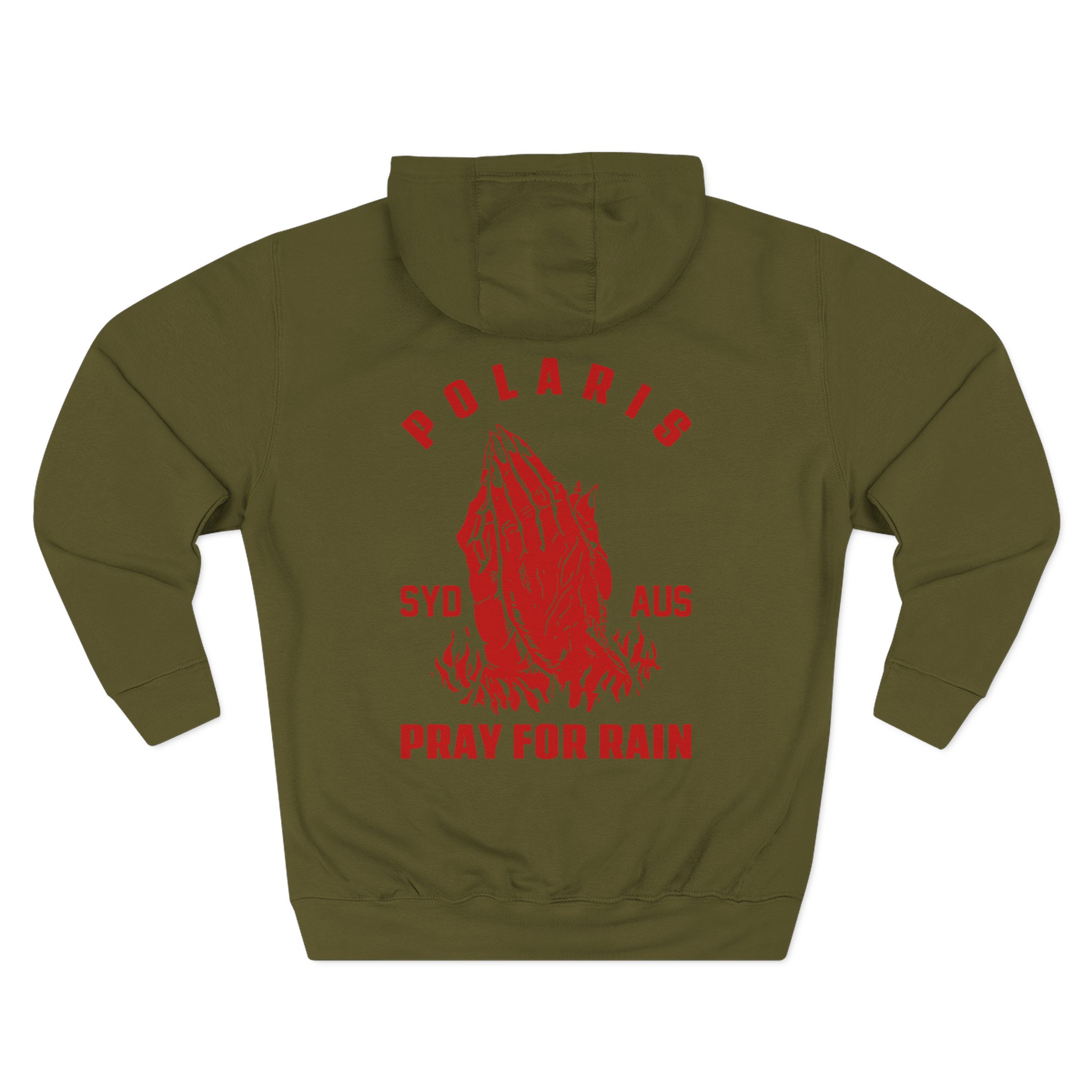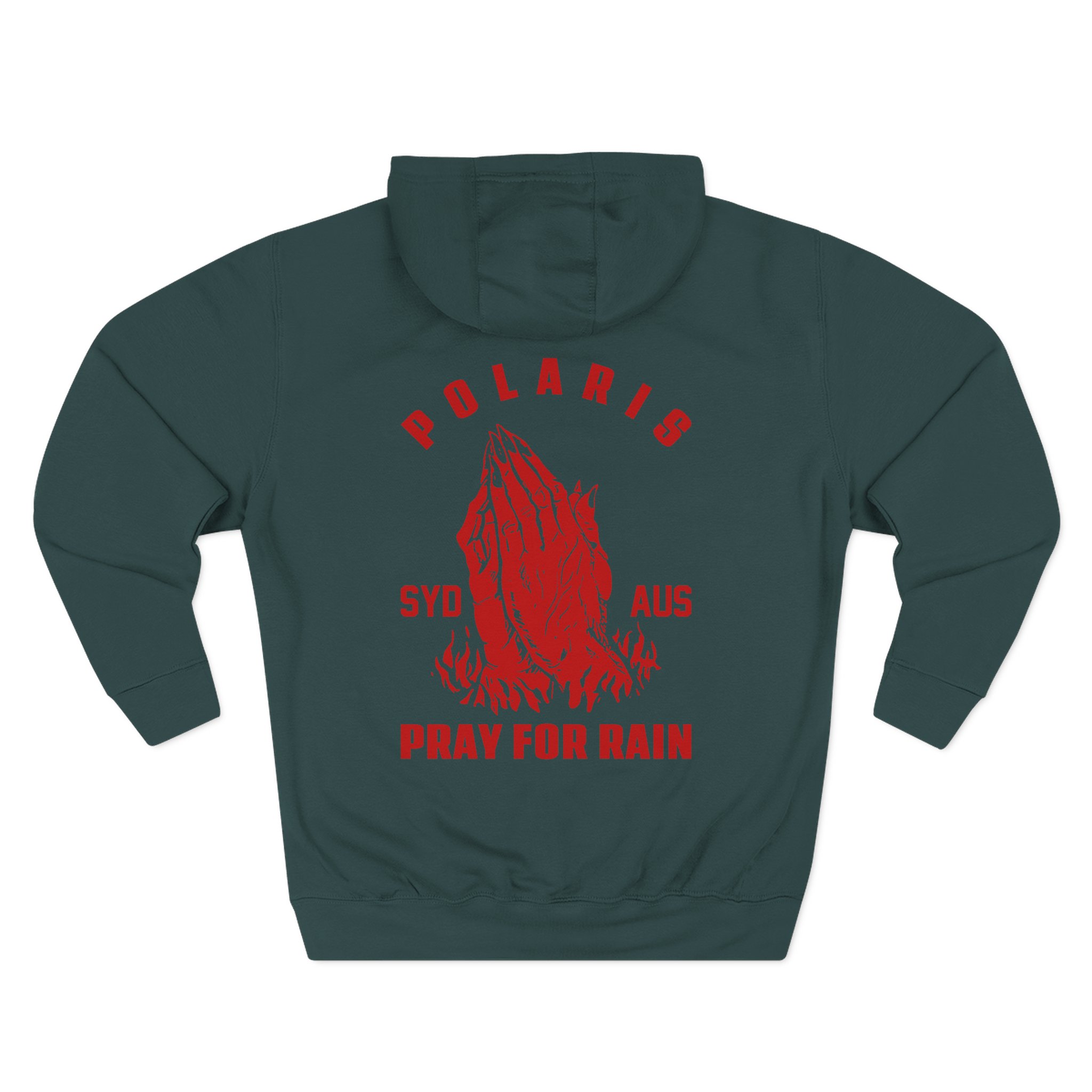 This Polaris Pray for Rain charcoal fleece hoodie settles into your rotation like an old friend — soft, weighty, and quietly bold. The three-panel hood and adjustable drawcord frame your face on blustery mornings. A roomy kangaroo pocket keeps hands warm and holds what you need for a quick walk or a late-night errand. The front artwork sits low and distressed, giving the piece a lived-in, slightly rebellious vibe that works whether you’re heading to a gig, a practice, or a coffee run. Built with sturdy double-needle seams and a soft 3-end fleece interior, it wears well over years of wear and washes while keeping its shape.