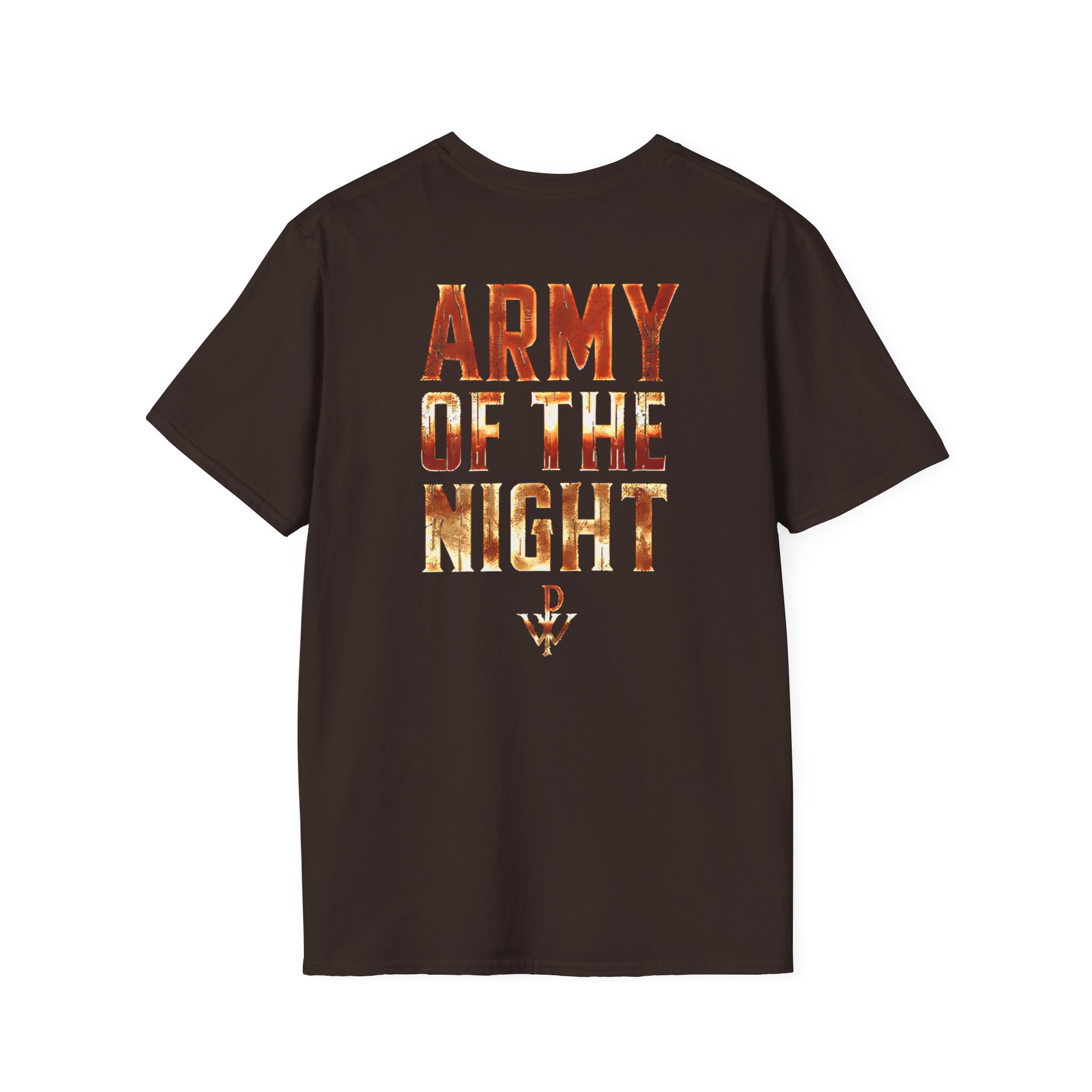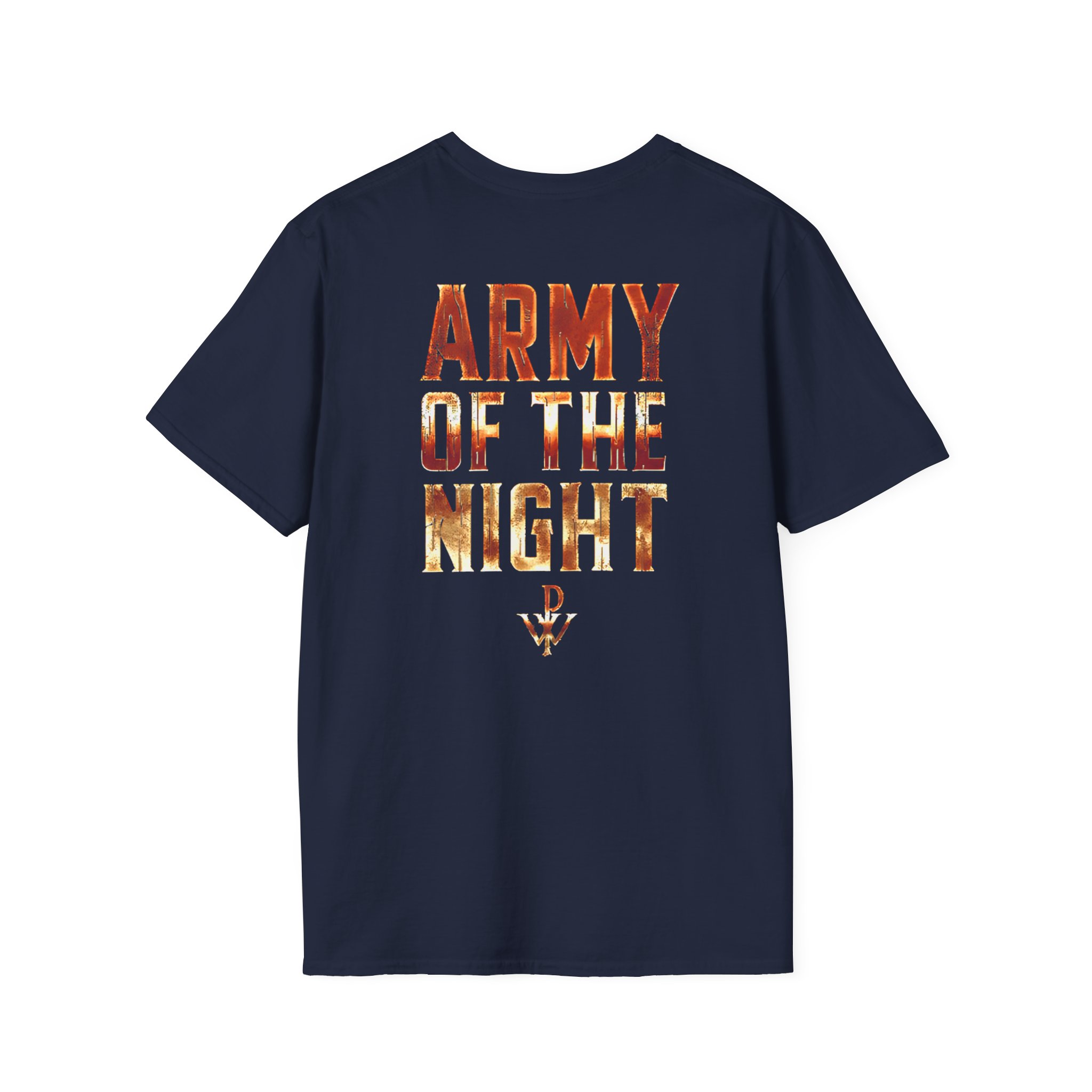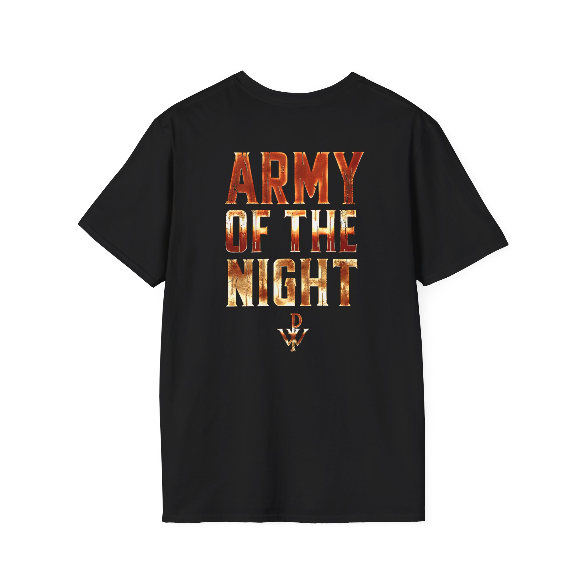 This lightweight, classic-fit tee carries a vintage tour-shirt look with hand-lettered script reading “Powerwolf Army of the Night” Soft ring-spun cotton and smooth printing make the graphic sit cleanly on the chest. Wear it to backyard shows, late-night drives, or when you want to bring a bit of road-worn Americana to a simple outfit. The crew neckline and tubular knit keep the silhouette neat, while shoulder tape and a ribbed collar hold the shape after many washes. It’s breathable, low-profile, and made to age with you—subtle black flecks appear on the Natural color for a lived-in feel.
