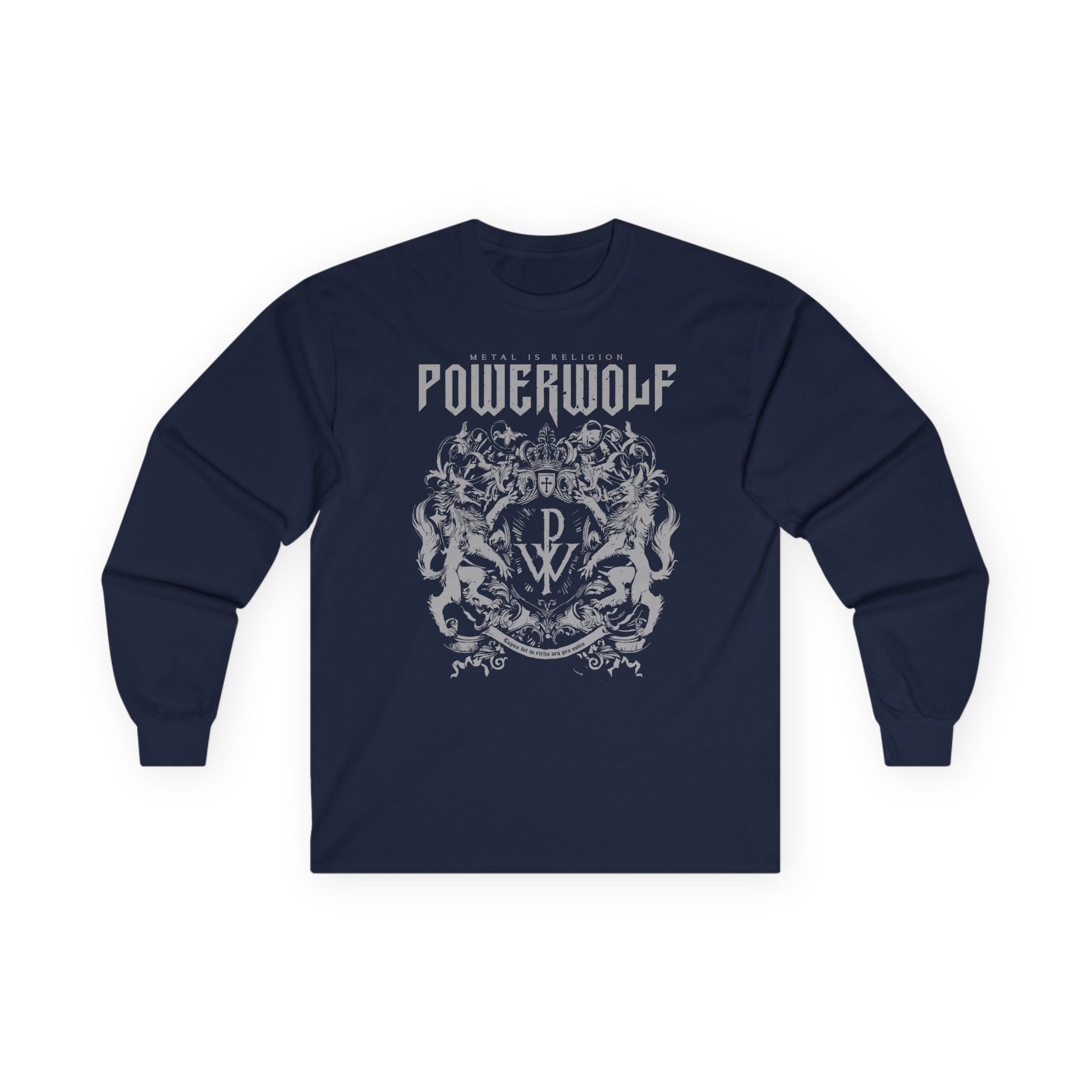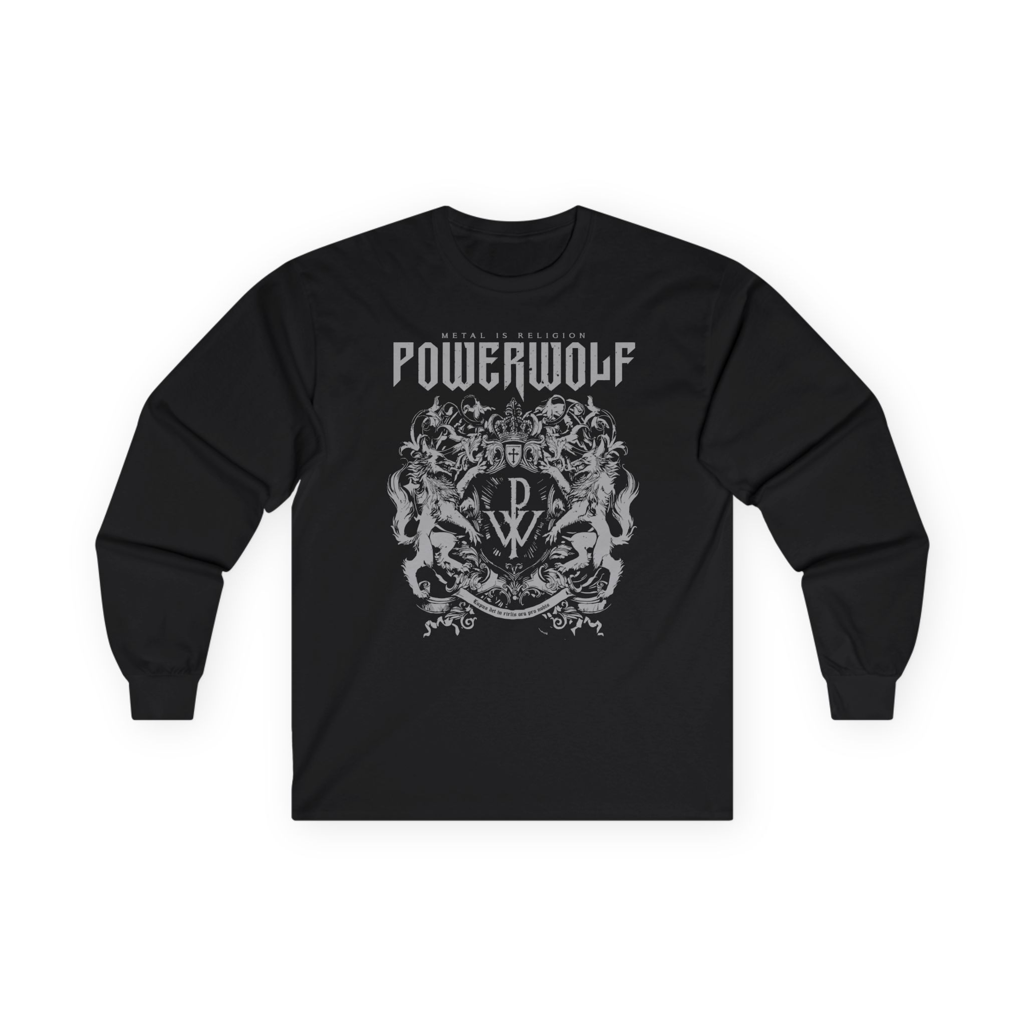 This Powerwolf Girlie long-sleeve tee brings vintage concert vibes to everyday wear. Soft yet substantial cotton and a classic, slightly boxy fit create a lived-in feel that layers well under jackets or stands alone. The front art—bold mirrored sunglasses, a painted blue nose and red lips—feels like a snapshot from an ’80s tour poster. Wear it to record-store hangs, low-key gigs, or when you want a guarded nod to music history without shouting. It’s the kind of shirt that feels like it already remembers a hundred nights out.