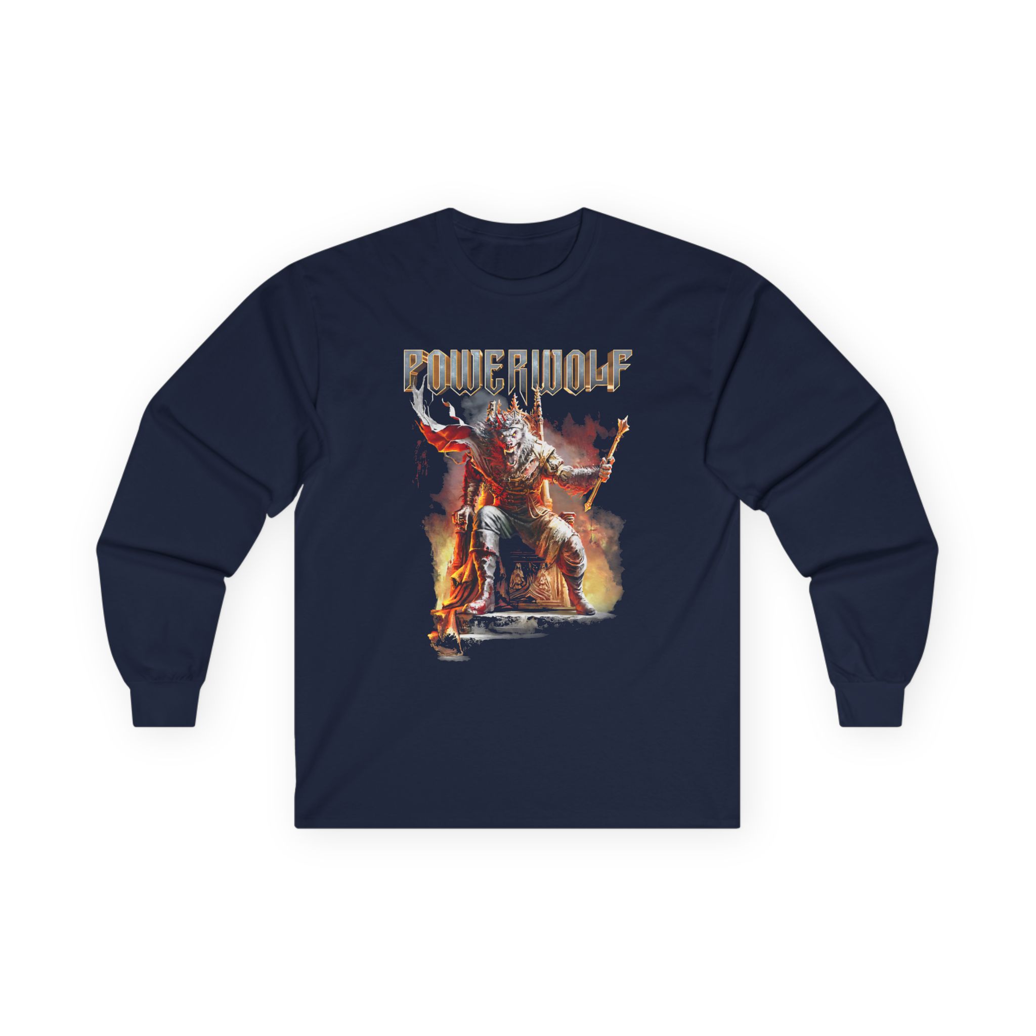 This Powerwolf Wake Up The Wicked Cover long-sleeve tee brings vintage concert vibes to everyday wear. Soft yet substantial cotton and a classic, slightly boxy fit create a lived-in feel that layers well under jackets or stands alone. The front art—bold mirrored sunglasses, a painted blue nose and red lips—feels like a snapshot from an ’80s tour poster. Wear it to record-store hangs, low-key gigs, or when you want a guarded nod to music history without shouting. It’s the kind of shirt that feels like it already remembers a hundred nights out.