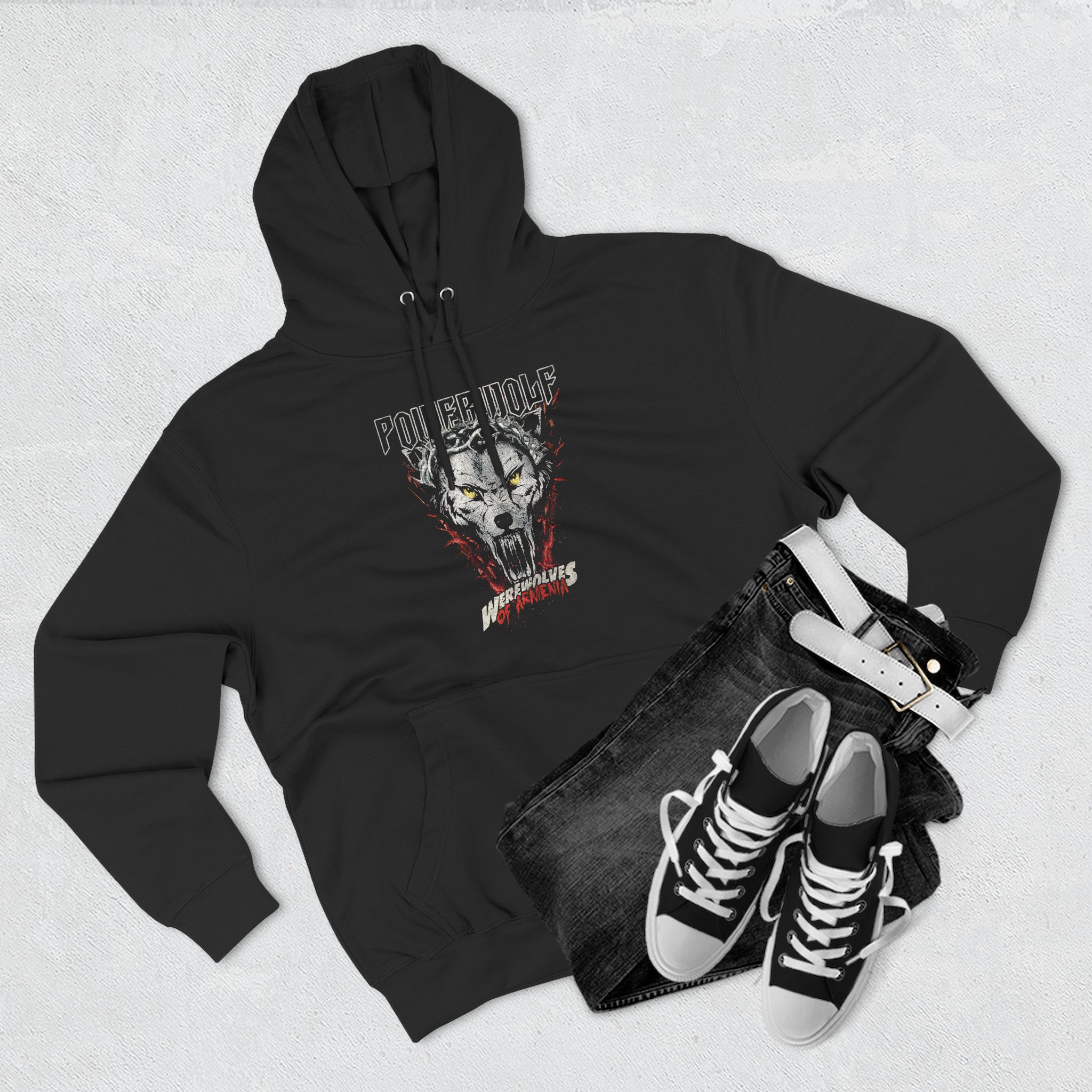 This Powerwolf Werewolves charcoal fleece hoodie settles into your rotation like an old friend — soft, weighty, and quietly bold. The three-panel hood and adjustable drawcord frame your face on blustery mornings. A roomy kangaroo pocket keeps hands warm and holds what you need for a quick walk or a late-night errand. The front artwork sits low and distressed, giving the piece a lived-in, slightly rebellious vibe that works whether you’re heading to a gig, a practice, or a coffee run. Built with sturdy double-needle seams and a soft 3-end fleece interior, it wears well over years of wear and washes while keeping its shape.