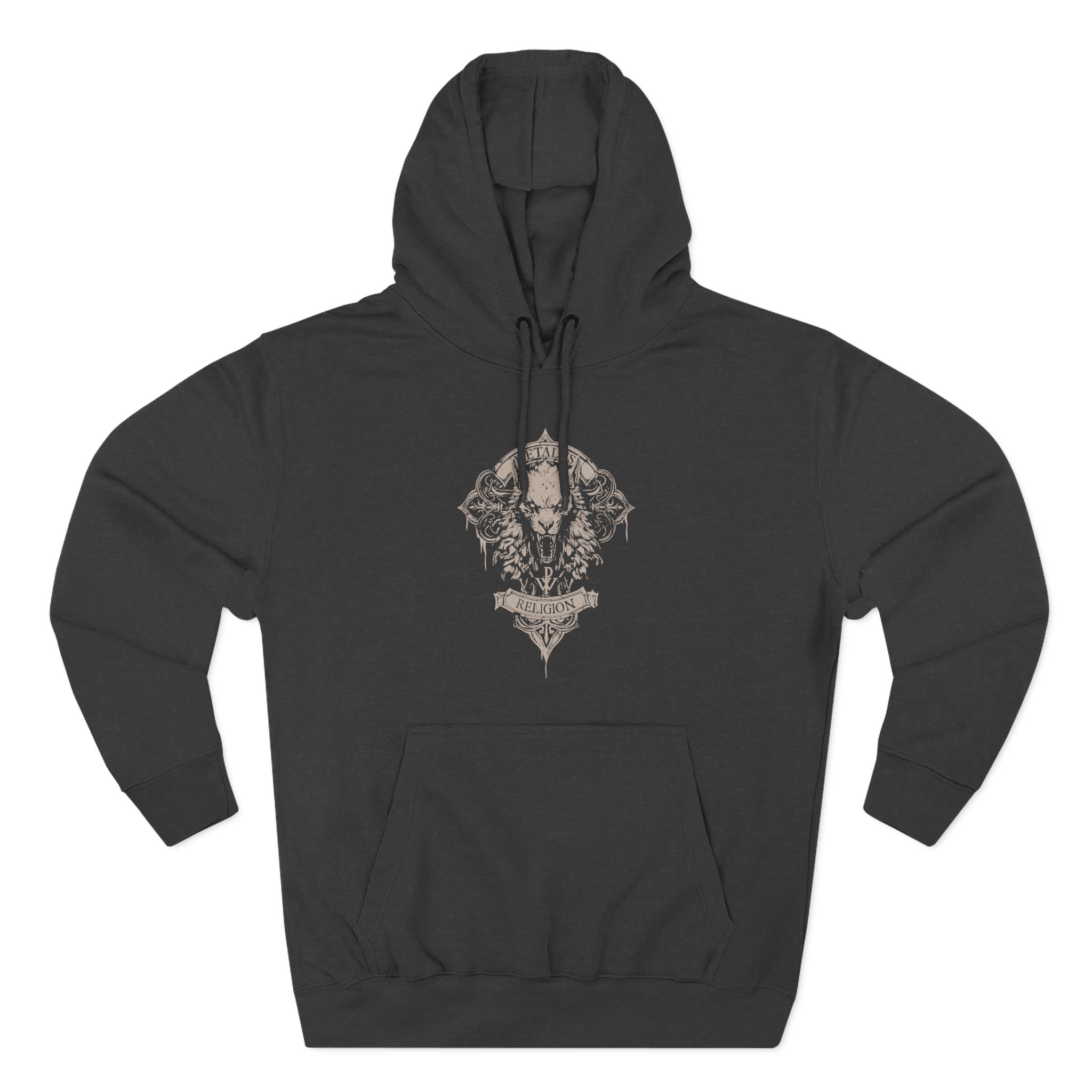 This Powerwolf Wolfhead charcoal fleece hoodie settles into your rotation like an old friend — soft, weighty, and quietly bold. The three-panel hood and adjustable drawcord frame your face on blustery mornings. A roomy kangaroo pocket keeps hands warm and holds what you need for a quick walk or a late-night errand. The front artwork sits low and distressed, giving the piece a lived-in, slightly rebellious vibe that works whether you’re heading to a gig, a practice, or a coffee run. Built with sturdy double-needle seams and a soft 3-end fleece interior, it wears well over years of wear and washes while keeping its shape.