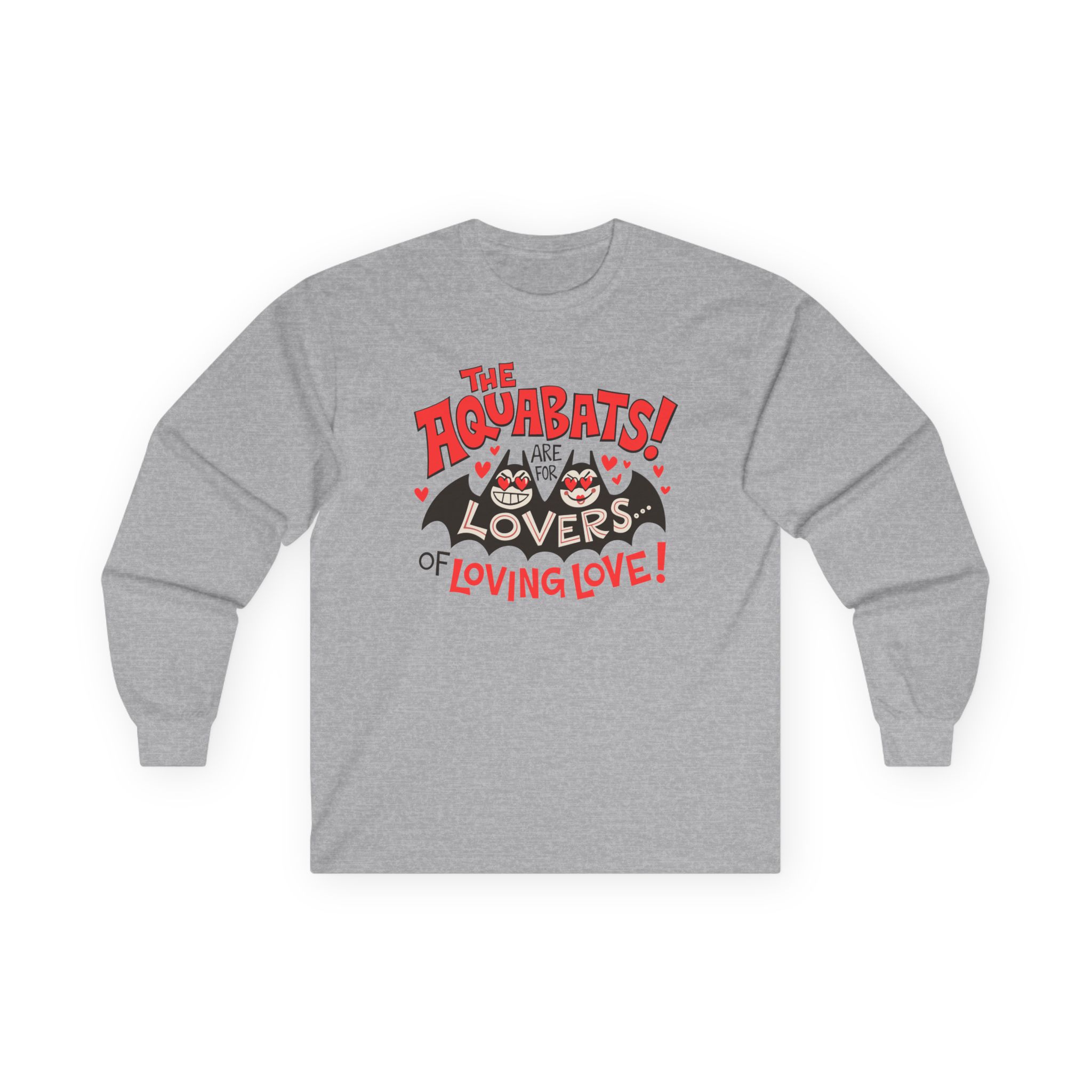 The Aquabats Are for Lovers…of Loving Love! long-sleeve tee brings vintage concert vibes to everyday wear. Soft yet substantial cotton and a classic, slightly boxy fit create a lived-in feel that layers well under jackets or stands alone. The front art—bold mirrored sunglasses, a painted blue nose and red lips—feels like a snapshot from an ’80s tour poster. Wear it to record-store hangs, low-key gigs, or when you want a guarded nod to music history without shouting. It’s the kind of shirt that feels like it already remembers a hundred nights out.