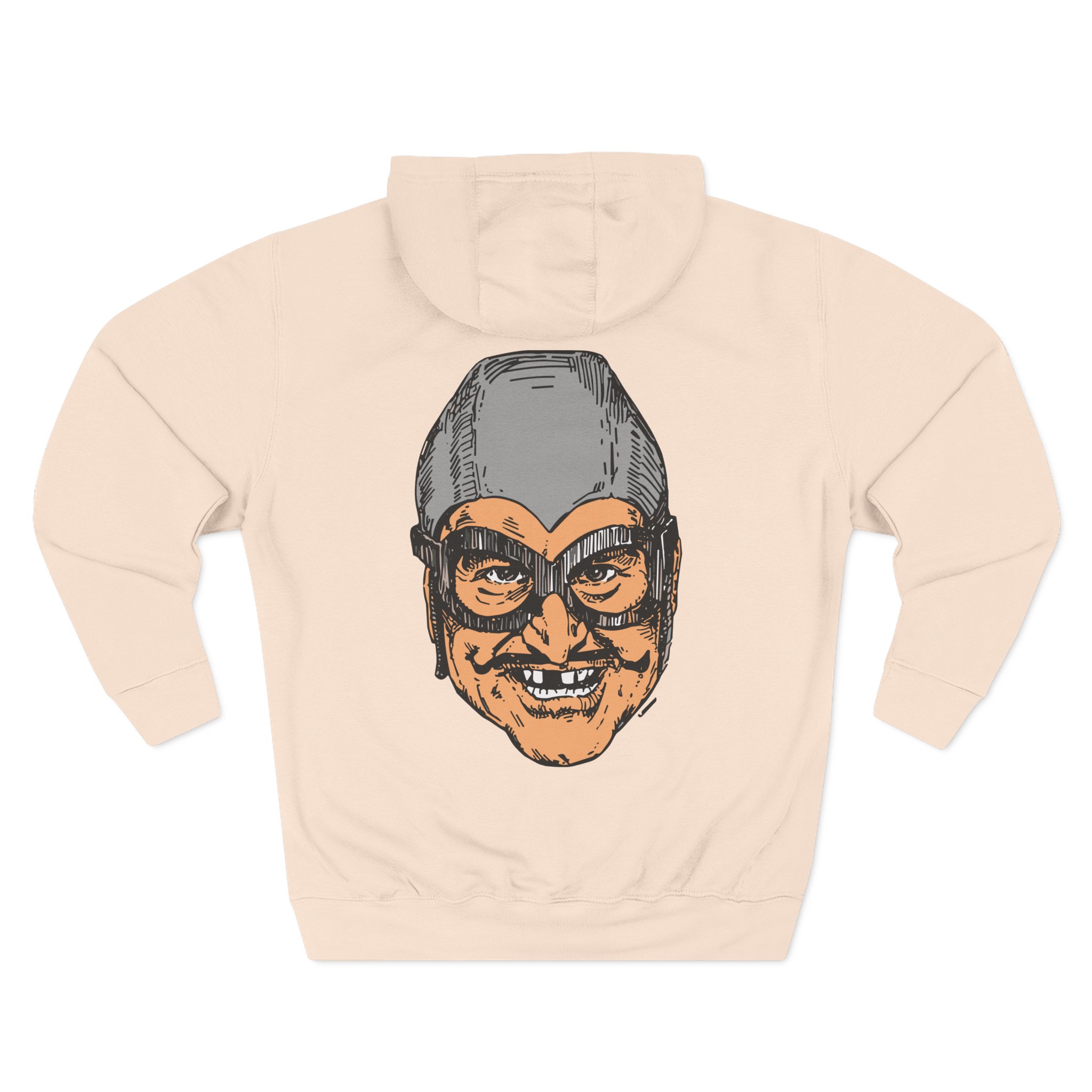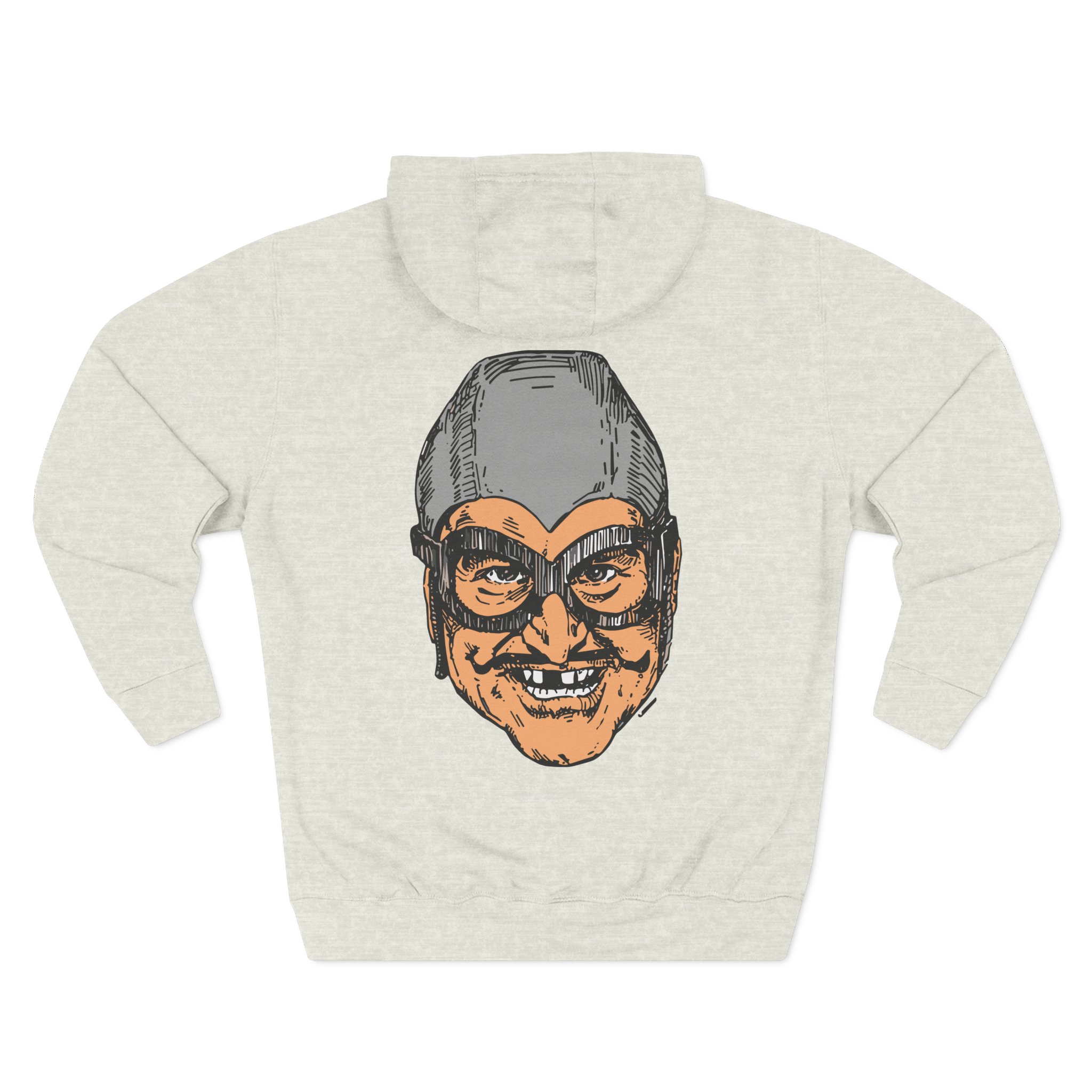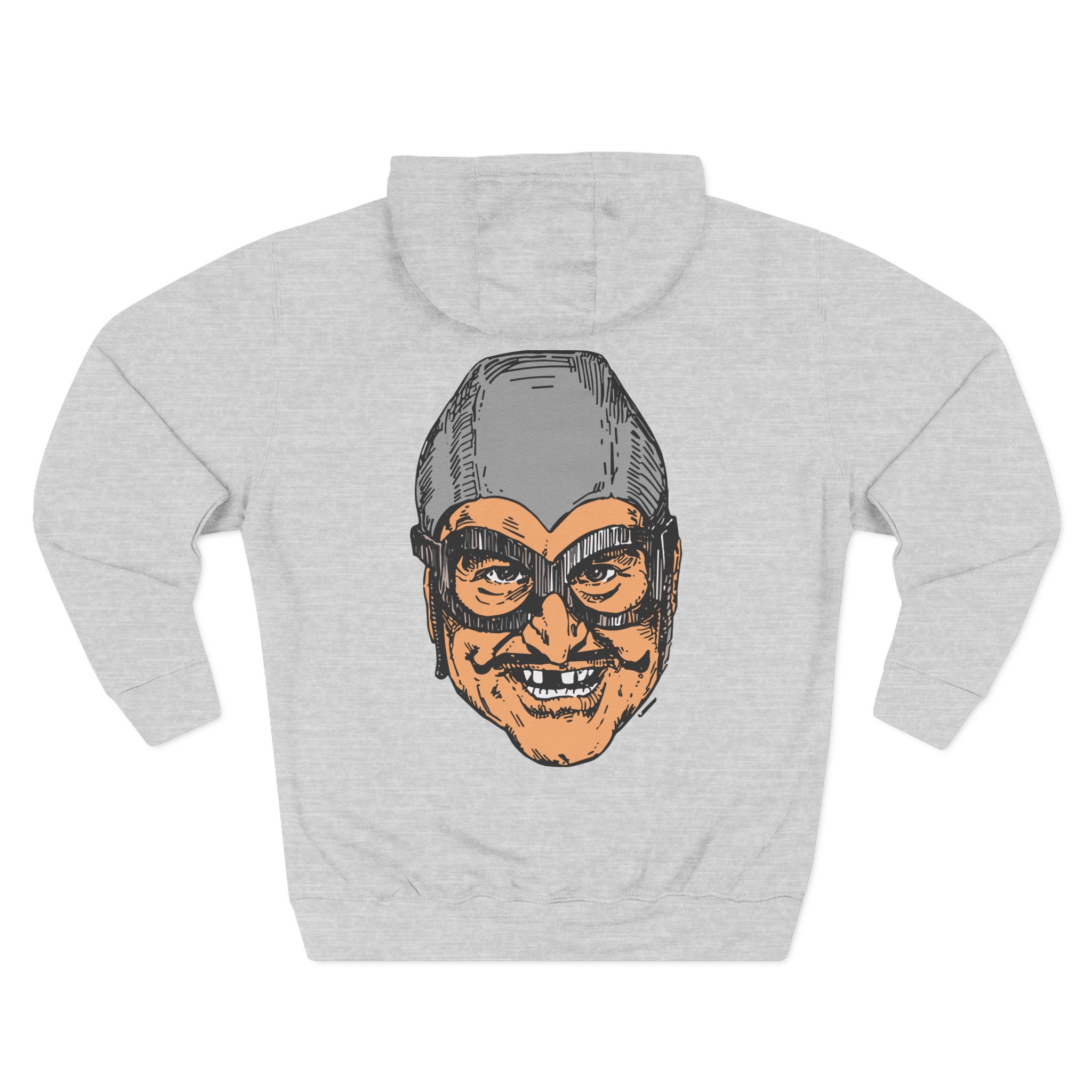 The Aquabats Bat Commander charcoal fleece hoodie settles into your rotation like an old friend — soft, weighty, and quietly bold. The three-panel hood and adjustable drawcord frame your face on blustery mornings. A roomy kangaroo pocket keeps hands warm and holds what you need for a quick walk or a late-night errand. The front artwork sits low and distressed, giving the piece a lived-in, slightly rebellious vibe that works whether you’re heading to a gig, a practice, or a coffee run. Built with sturdy double-needle seams and a soft 3-end fleece interior, it wears well over years of wear and washes while keeping its shape.