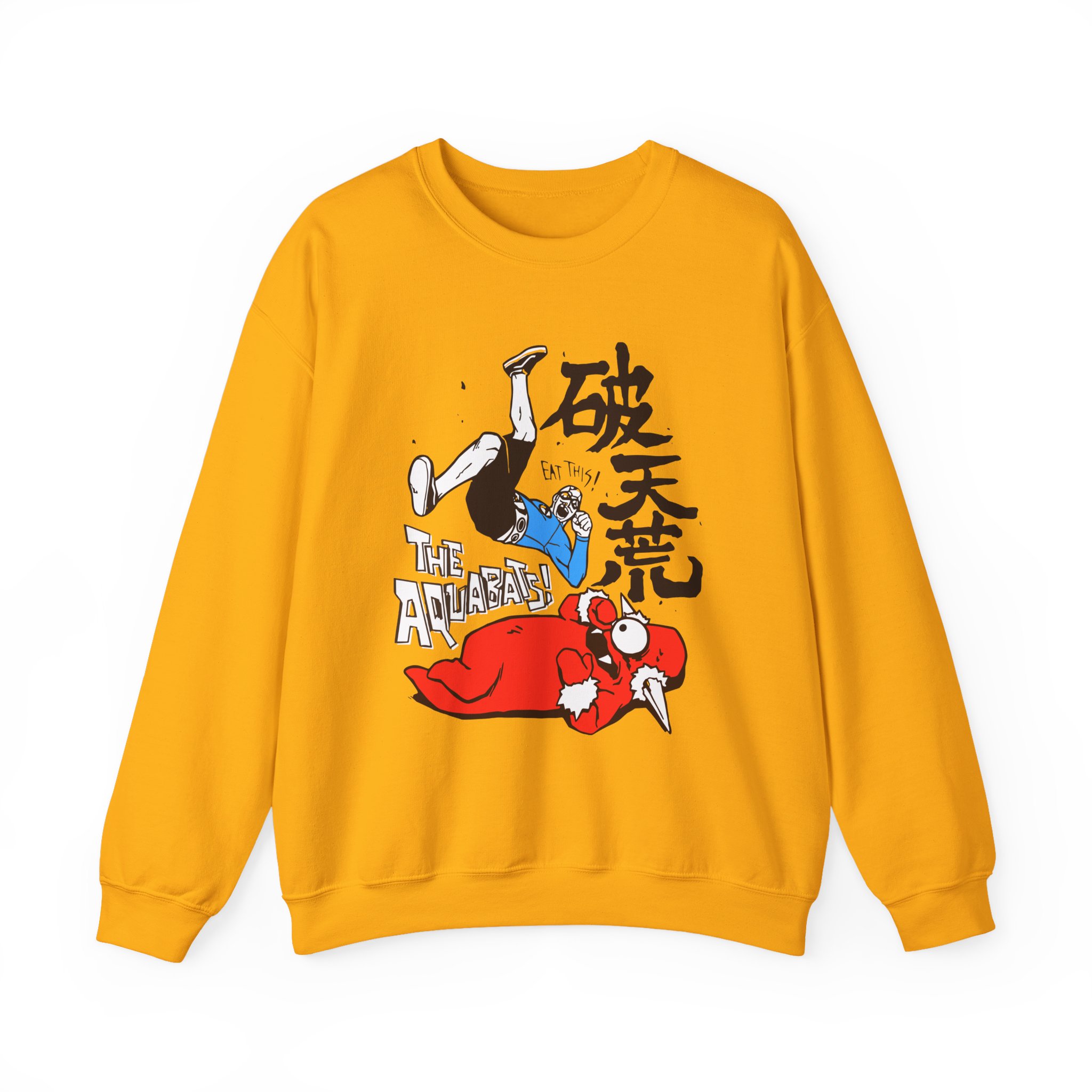 The Gildan 18000 sweatshirt is The Aquabats Elbow Drop! Archive unisex heavy blend crewneck made from a 50/50 cotton-polyester fabric, combining softness with lasting durability. Its smooth surface supports crisp, vibrant prints and embroidery, while the ribbed-knit collar and reinforced cuffs help it keep its shape over time. A seamless body design reduces irritation and adds to overall comfort. Practical, sturdy, and print-friendly, the Gildan 18000 sweatshirt remains a top choice for custom apparel.