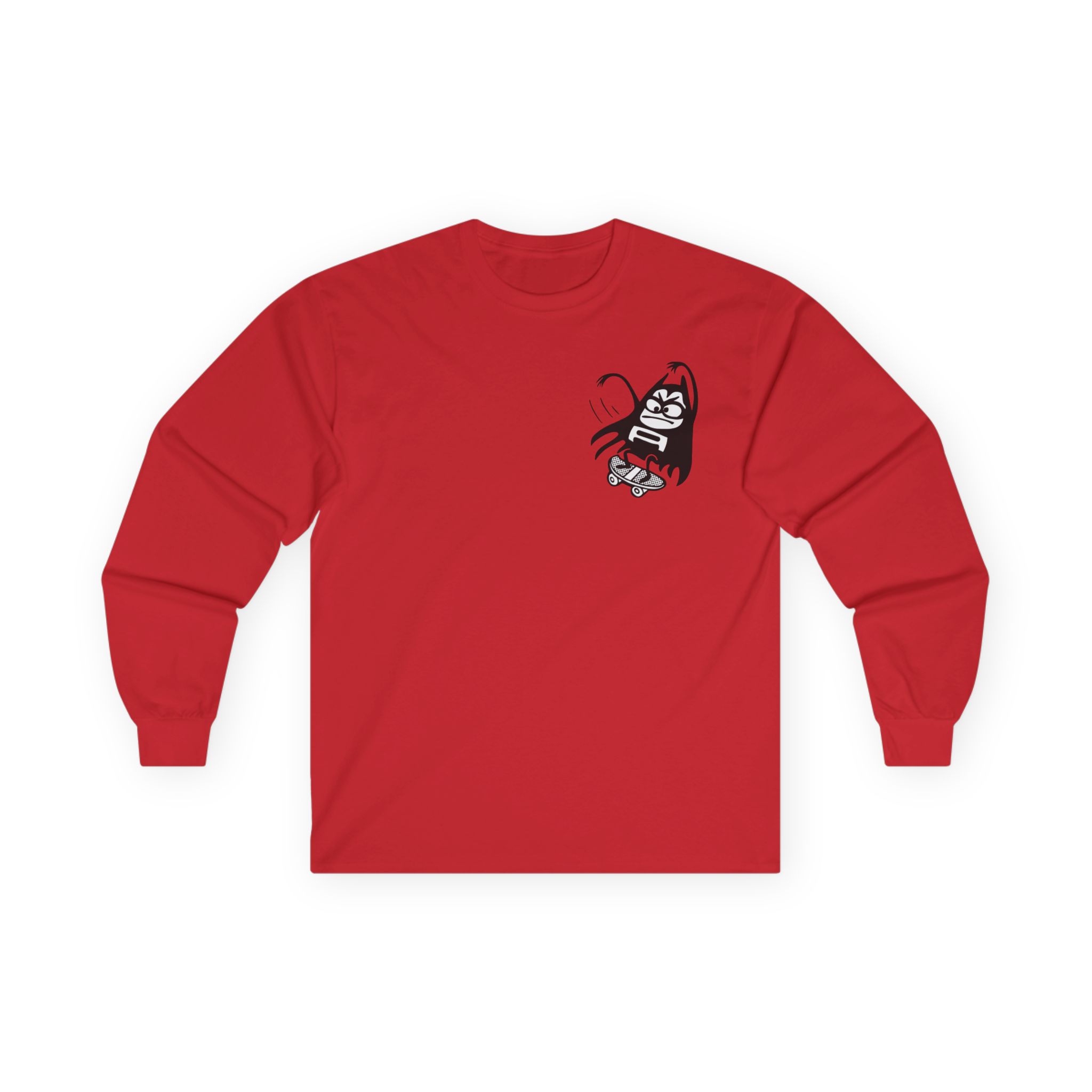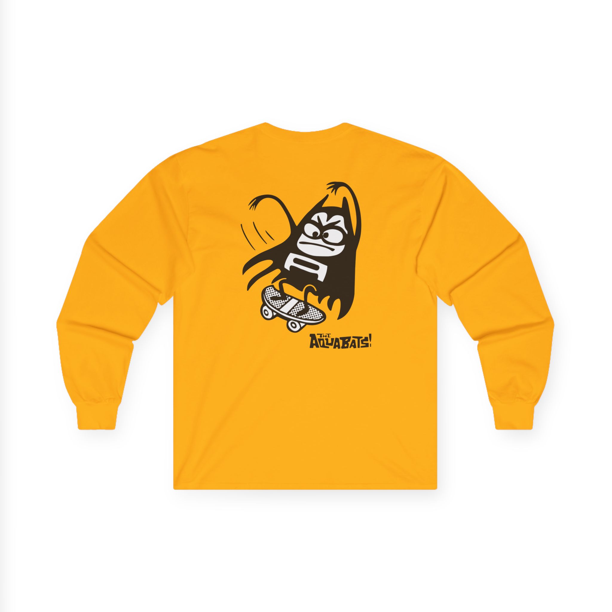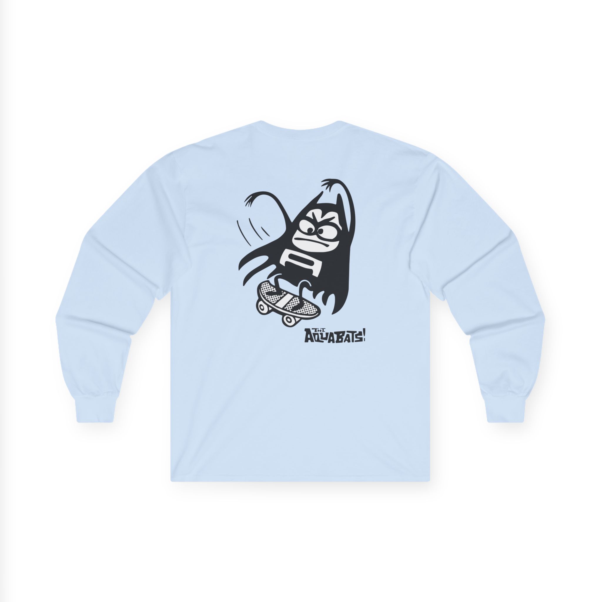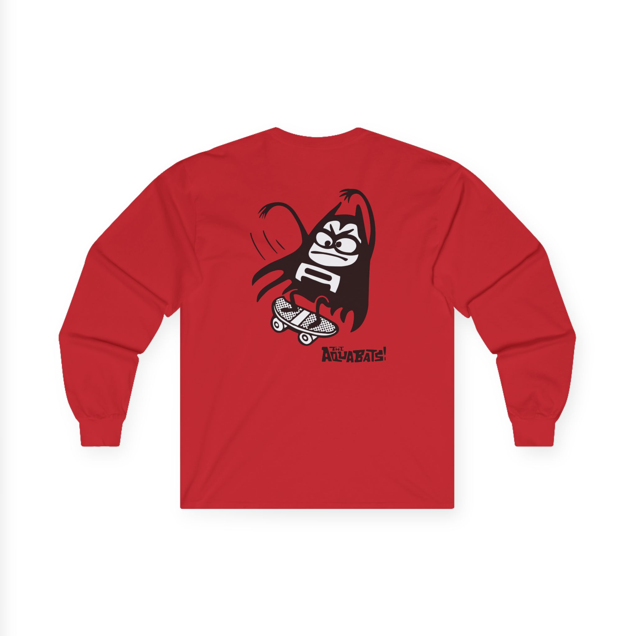 The Aquabats Lil Bat Skateboard long-sleeve tee brings vintage concert vibes to everyday wear. Soft yet substantial cotton and a classic, slightly boxy fit create a lived-in feel that layers well under jackets or stands alone. The front art—bold mirrored sunglasses, a painted blue nose and red lips—feels like a snapshot from an ’80s tour poster. Wear it to record-store hangs, low-key gigs, or when you want a guarded nod to music history without shouting. It’s the kind of shirt that feels like it already remembers a hundred nights out.