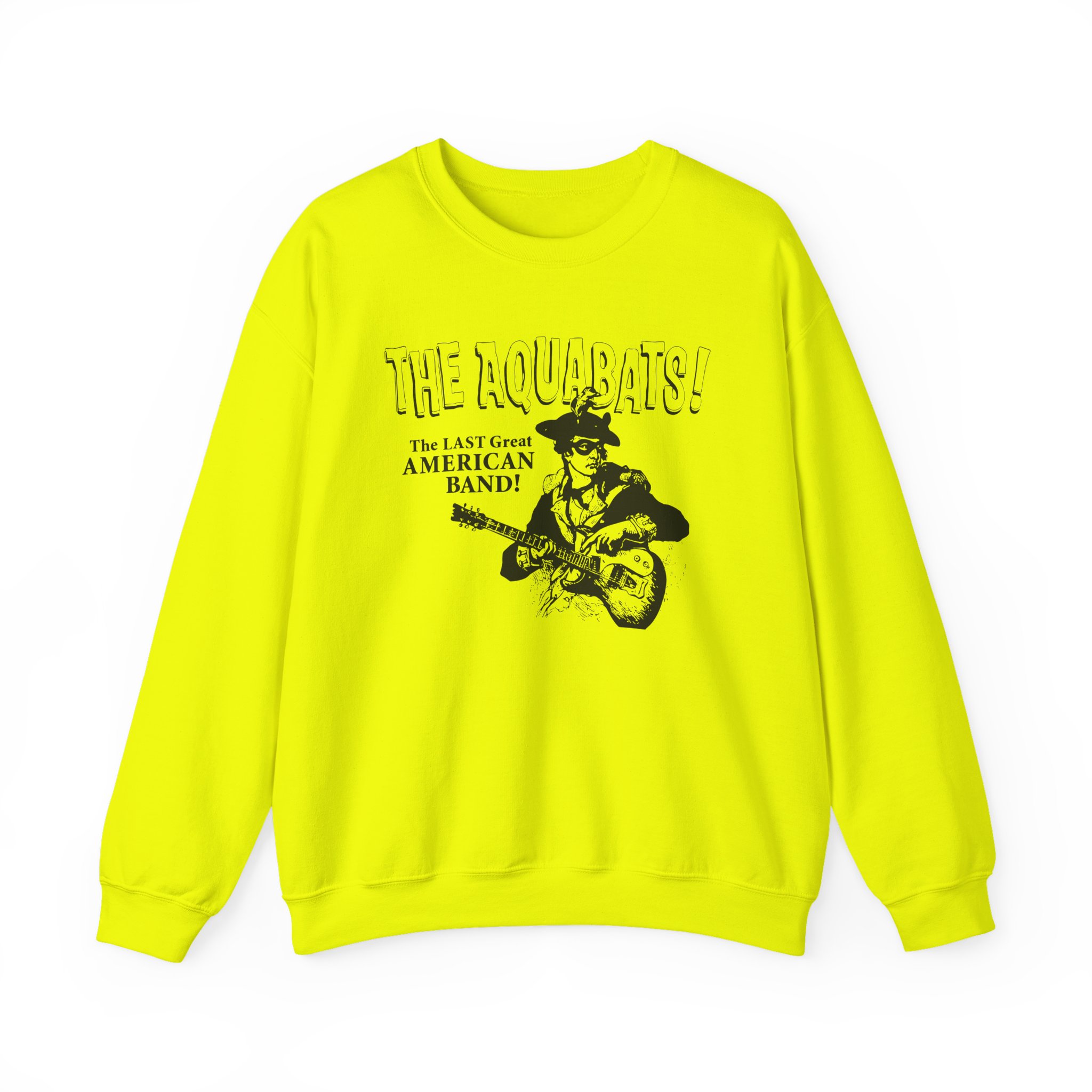 The Gildan 18000 sweatshirt is The Aquabats the Last Great American Band! unisex heavy blend crewneck made from a 50/50 cotton-polyester fabric, combining softness with lasting durability. Its smooth surface supports crisp, vibrant prints and embroidery, while the ribbed-knit collar and reinforced cuffs help it keep its shape over time. A seamless body design reduces irritation and adds to overall comfort. Practical, sturdy, and print-friendly, the Gildan 18000 sweatshirt remains a top choice for custom apparel.
