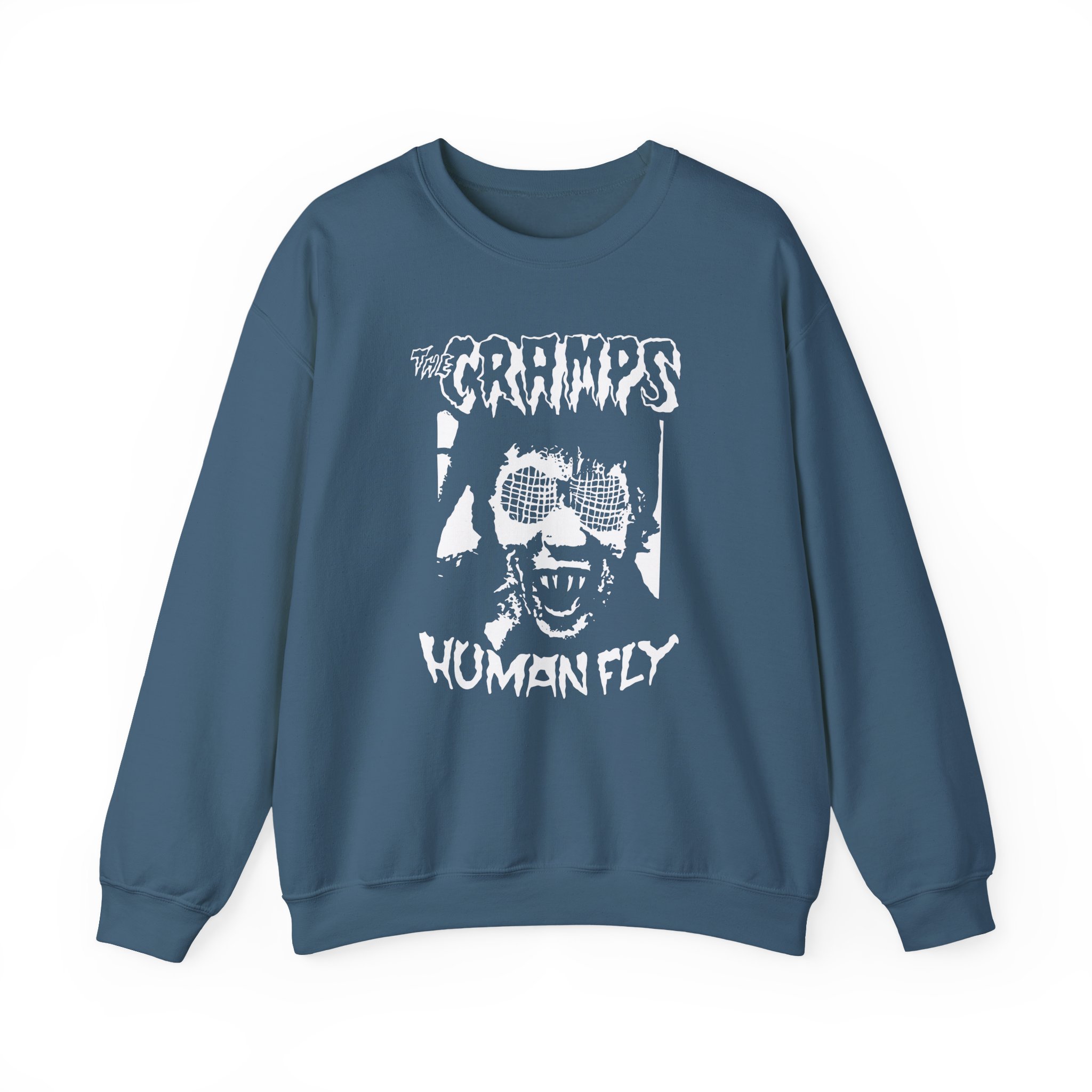 The Gildan 18000 sweatshirt is a The Cramps Human Fly unisex heavy blend crewneck made from a 50/50 cotton-polyester fabric, combining softness with lasting durability. Its smooth surface supports crisp, vibrant prints and embroidery, while the ribbed-knit collar and reinforced cuffs help it keep its shape over time. A seamless body design reduces irritation and adds to overall comfort. Practical, sturdy, and print-friendly, the Gildan 18000 sweatshirt remains a top choice for custom apparel.