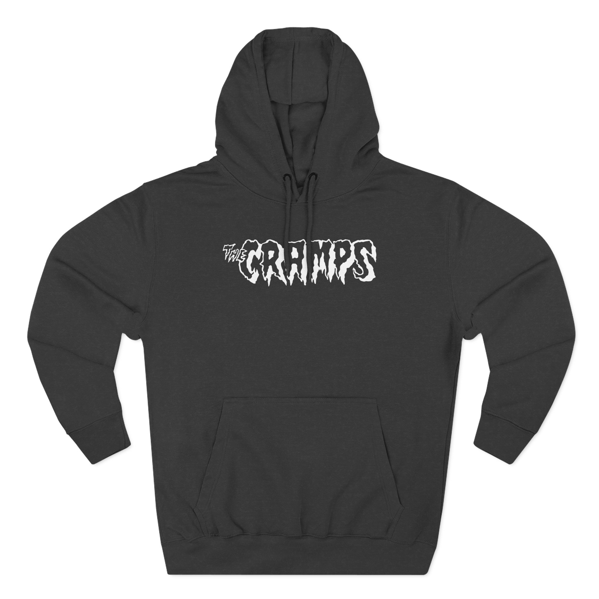 The Cramps Logo charcoal fleece hoodie settles into your rotation like an old friend — soft, weighty, and quietly bold. The three-panel hood and adjustable drawcord frame your face on blustery mornings. A roomy kangaroo pocket keeps hands warm and holds what you need for a quick walk or a late-night errand. The front artwork sits low and distressed, giving the piece a lived-in, slightly rebellious vibe that works whether you’re heading to a gig, a practice, or a coffee run. Built with sturdy double-needle seams and a soft 3-end fleece interior, it wears well over years of wear and washes while keeping its shape.