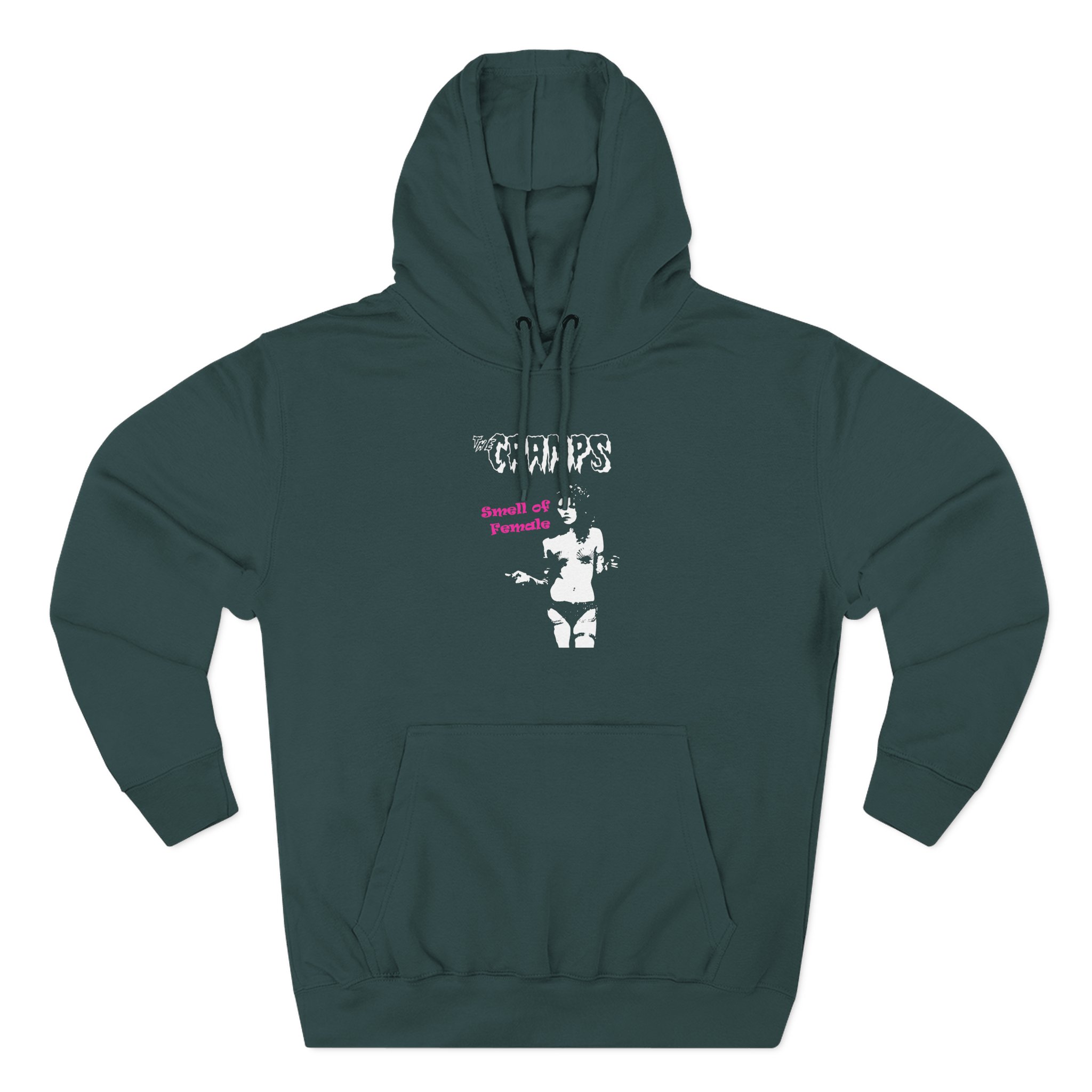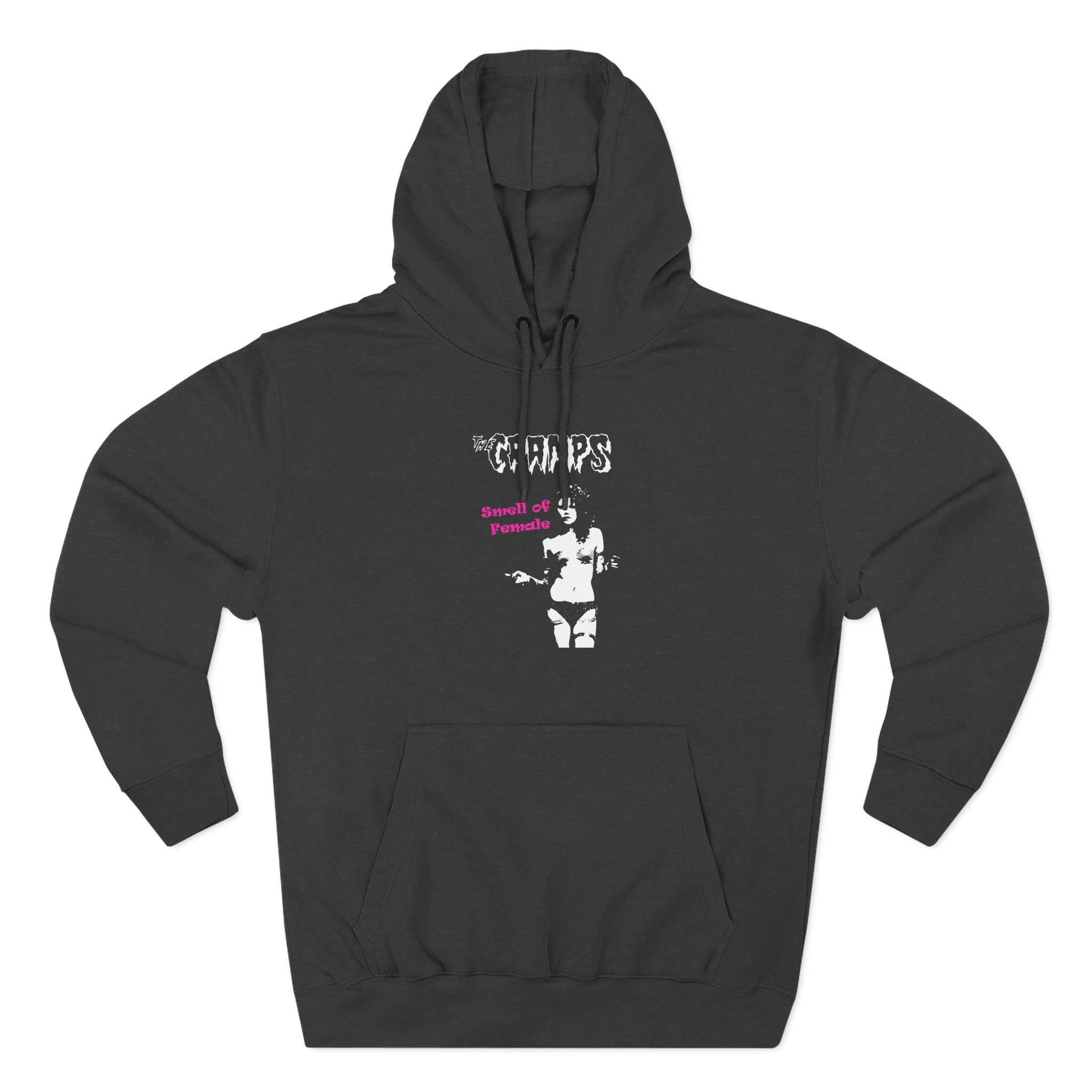 The Cramps Smell of Female charcoal fleece hoodie settles into your rotation like an old friend — soft, weighty, and quietly bold. The three-panel hood and adjustable drawcord frame your face on blustery mornings. A roomy kangaroo pocket keeps hands warm and holds what you need for a quick walk or a late-night errand. The front artwork sits low and distressed, giving the piece a lived-in, slightly rebellious vibe that works whether you’re heading to a gig, a practice, or a coffee run. Built with sturdy double-needle seams and a soft 3-end fleece interior, it wears well over years of wear and washes while keeping its shape.