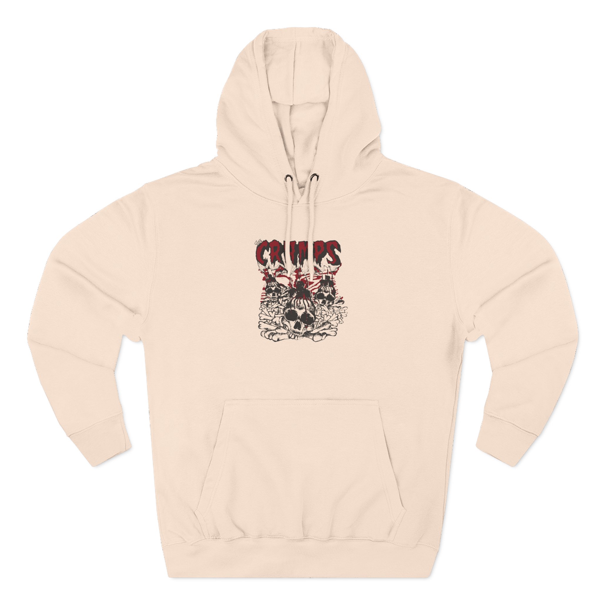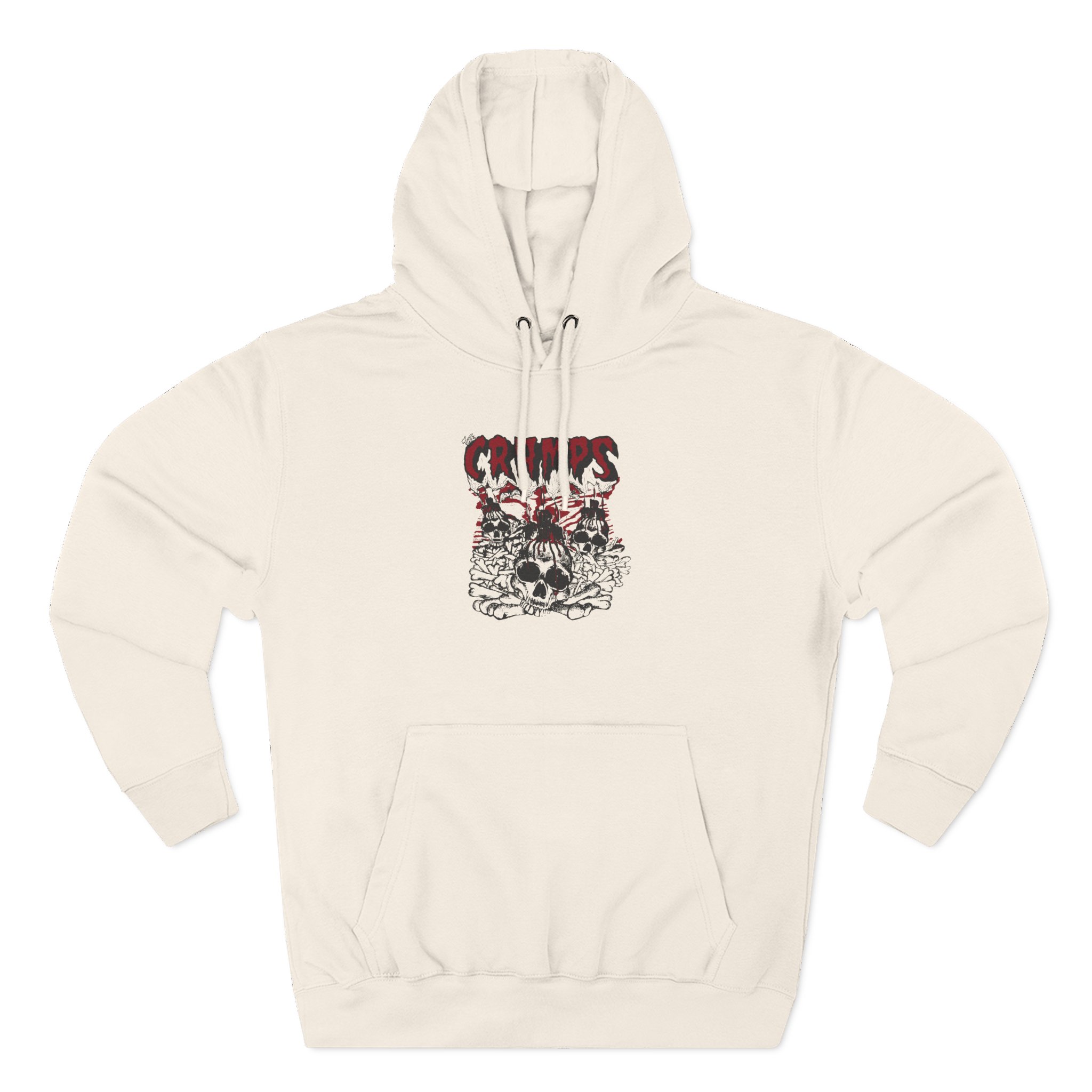 The Cramps charcoal fleece hoodie settles into your rotation like an old friend — soft, weighty, and quietly bold. The three-panel hood and adjustable drawcord frame your face on blustery mornings. A roomy kangaroo pocket keeps hands warm and holds what you need for a quick walk or a late-night errand. The front artwork sits low and distressed, giving the piece a lived-in, slightly rebellious vibe that works whether you’re heading to a gig, a practice, or a coffee run. Built with sturdy double-needle seams and a soft 3-end fleece interior, it wears well over years of wear and washes while keeping its shape.