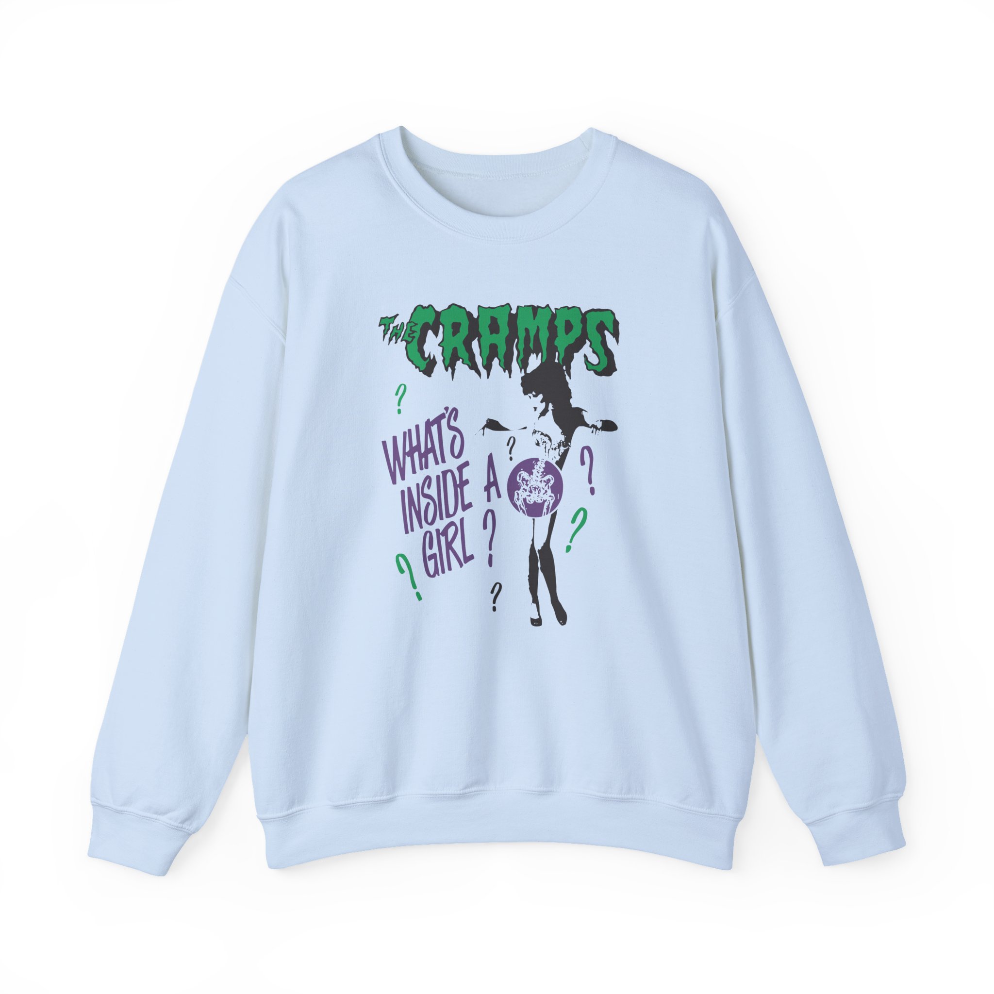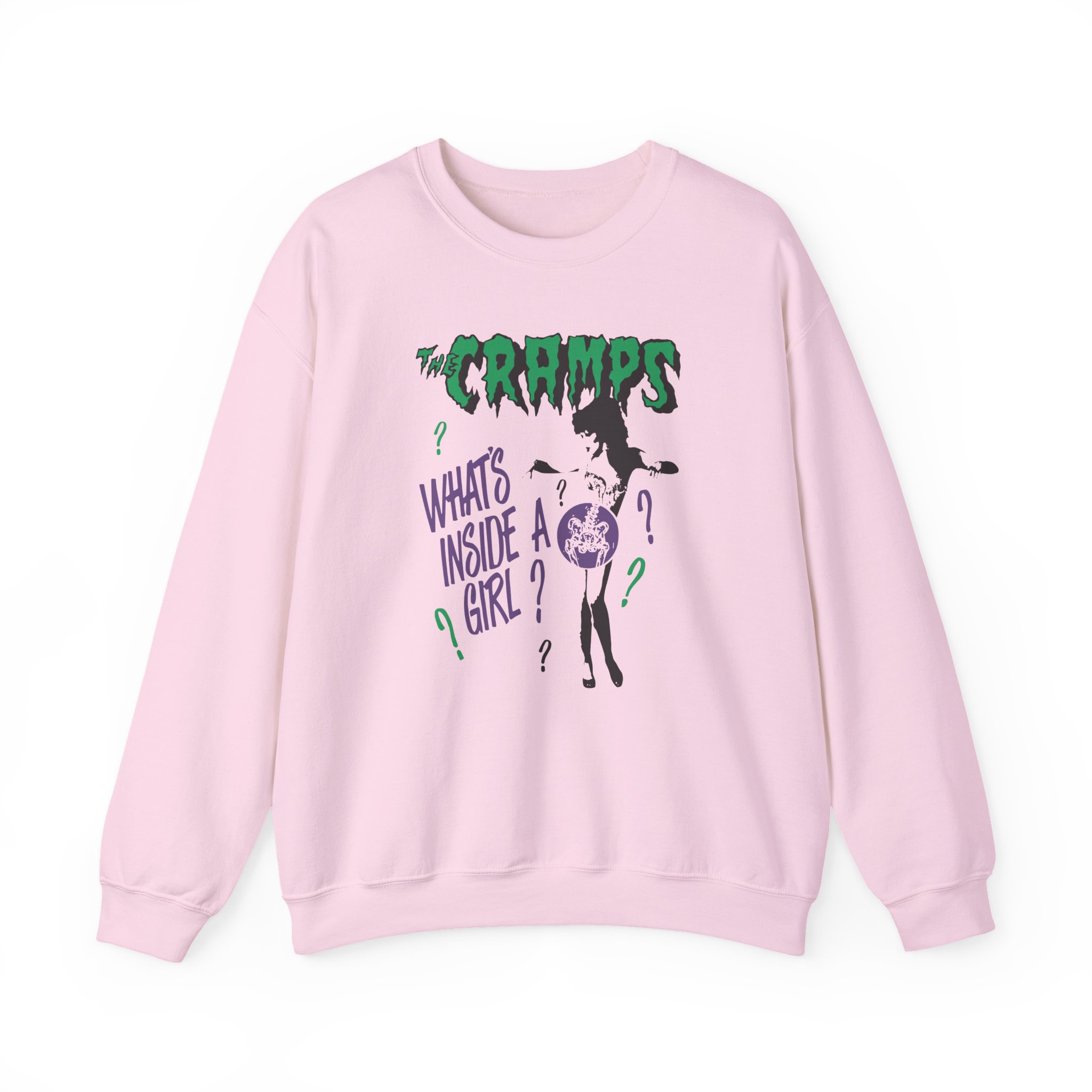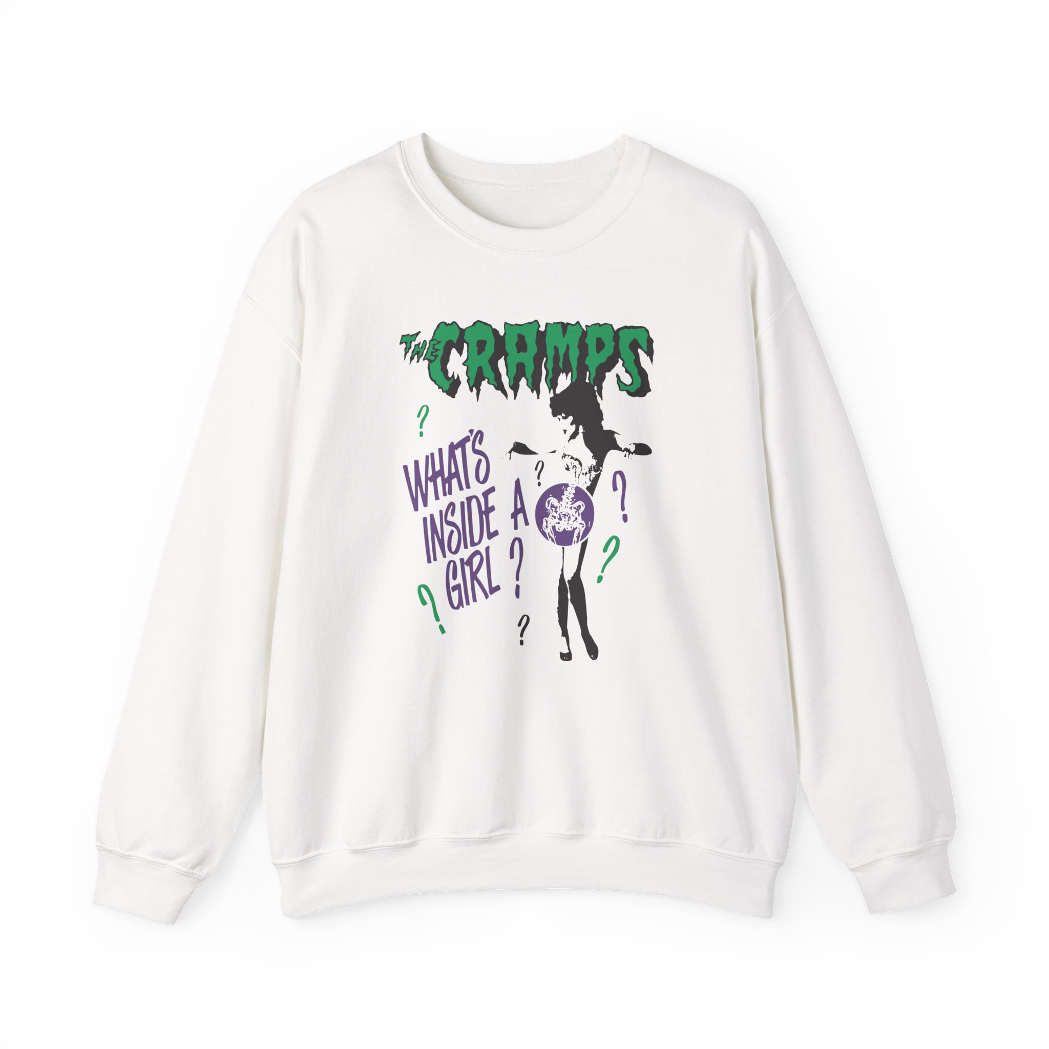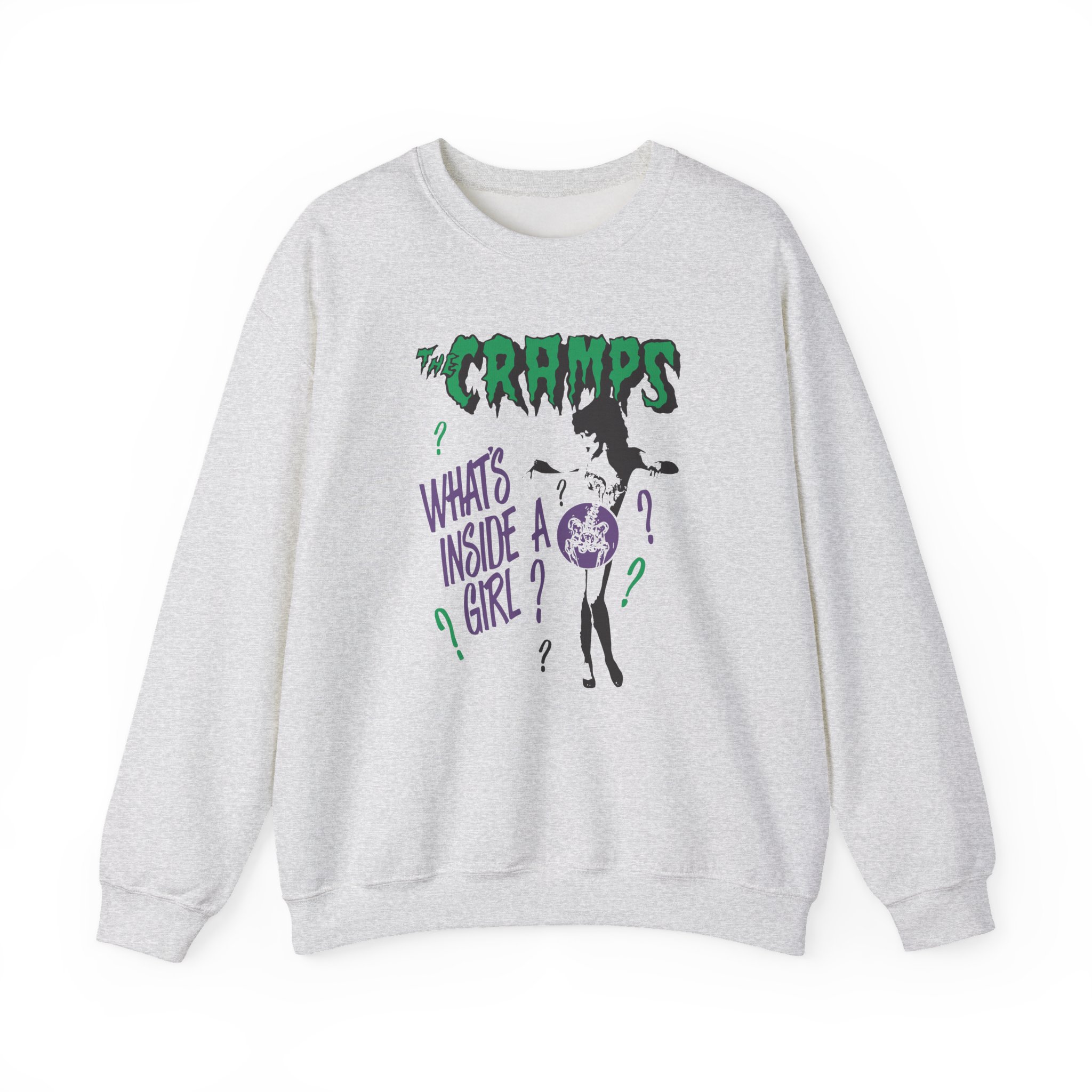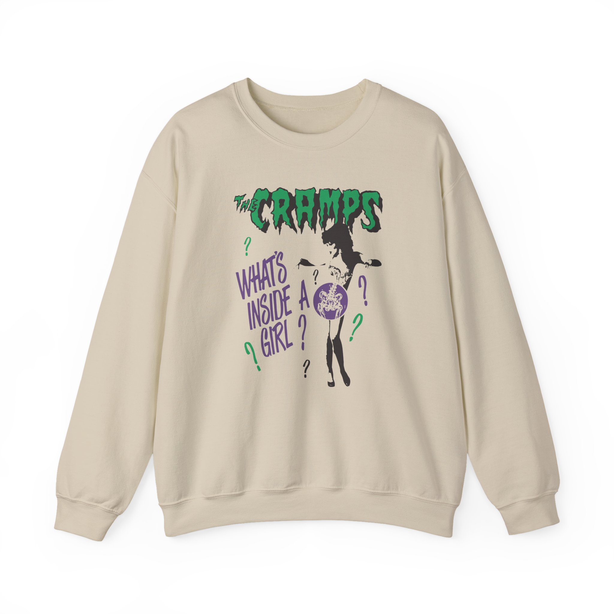 The Gildan 18000 sweatshirt is a The Cramps What's Inside a Girl unisex heavy blend crewneck made from a 50/50 cotton-polyester fabric, combining softness with lasting durability. Its smooth surface supports crisp, vibrant prints and embroidery, while the ribbed-knit collar and reinforced cuffs help it keep its shape over time. A seamless body design reduces irritation and adds to overall comfort. Practical, sturdy, and print-friendly, the Gildan 18000 sweatshirt remains a top choice for custom apparel.