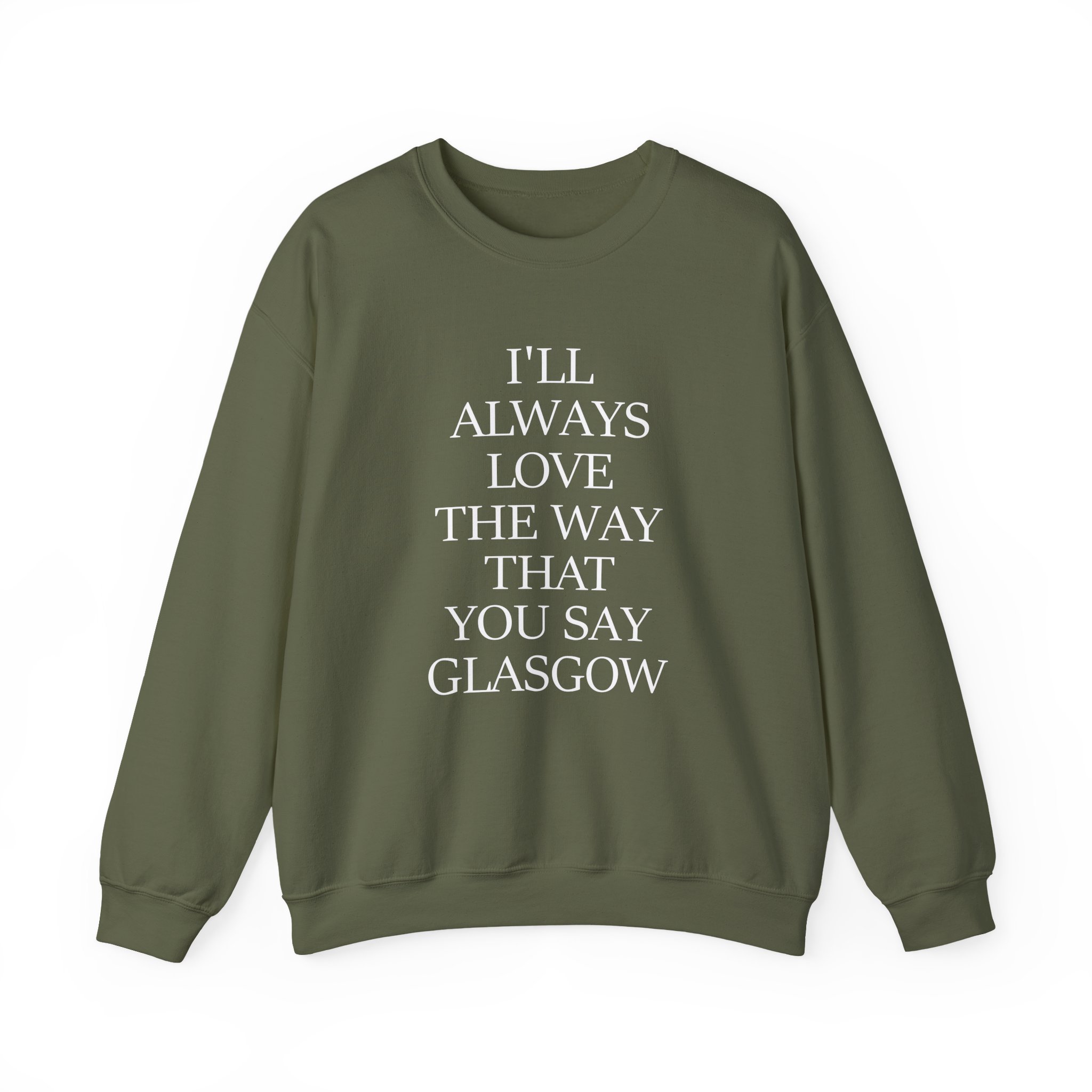The Gildan 18000 sweatshirt is The Snuts I'll Always Love the Way That You Say Glasgow unisex heavy blend crewneck made from a 50/50 cotton-polyester fabric, combining softness with lasting durability. Its smooth surface supports crisp, vibrant prints and embroidery, while the ribbed-knit collar and reinforced cuffs help it keep its shape over time. A seamless body design reduces irritation and adds to overall comfort. Practical, sturdy, and print-friendly, the Gildan 18000 sweatshirt remains a top choice for custom apparel.