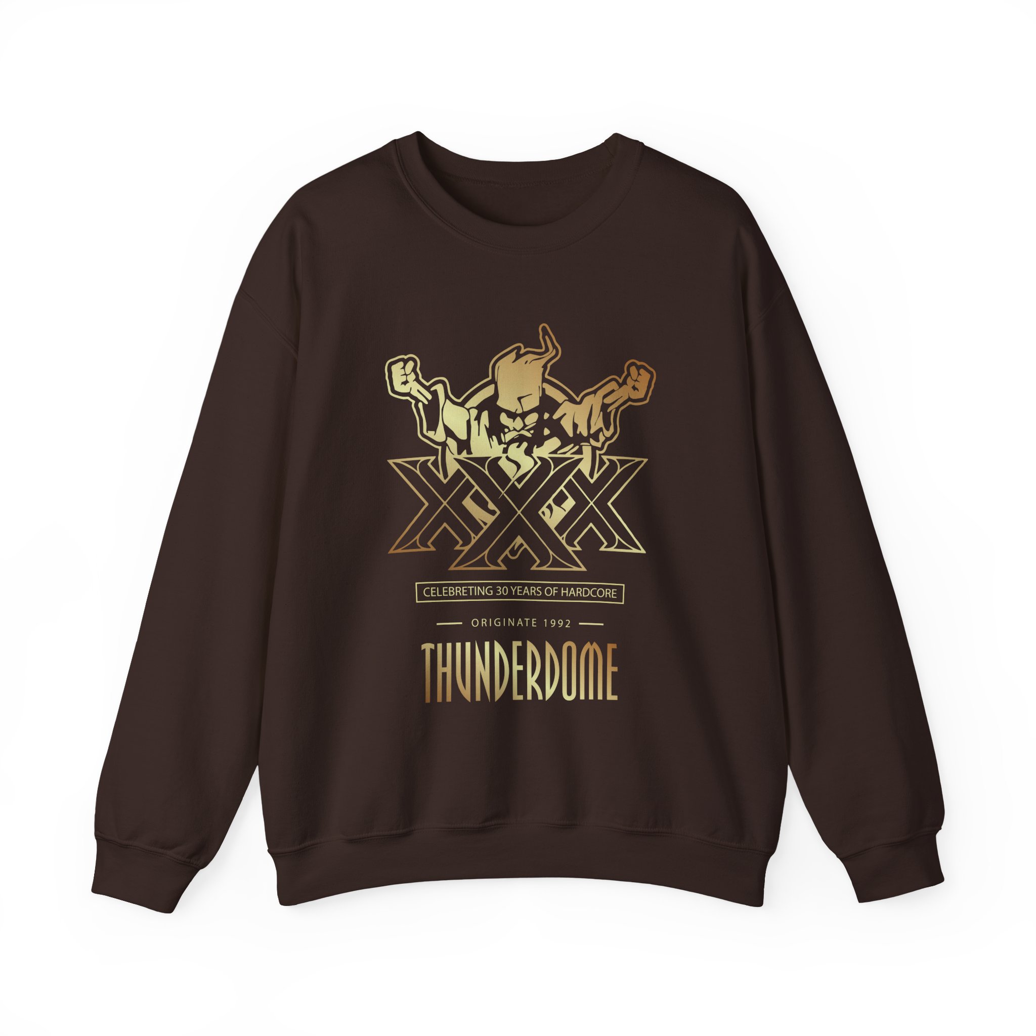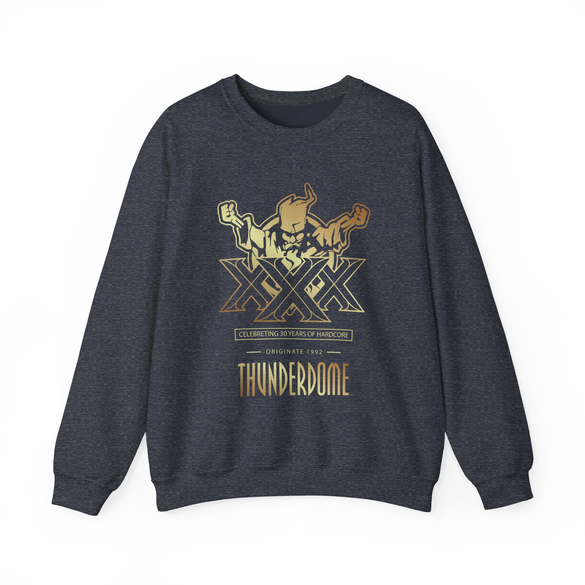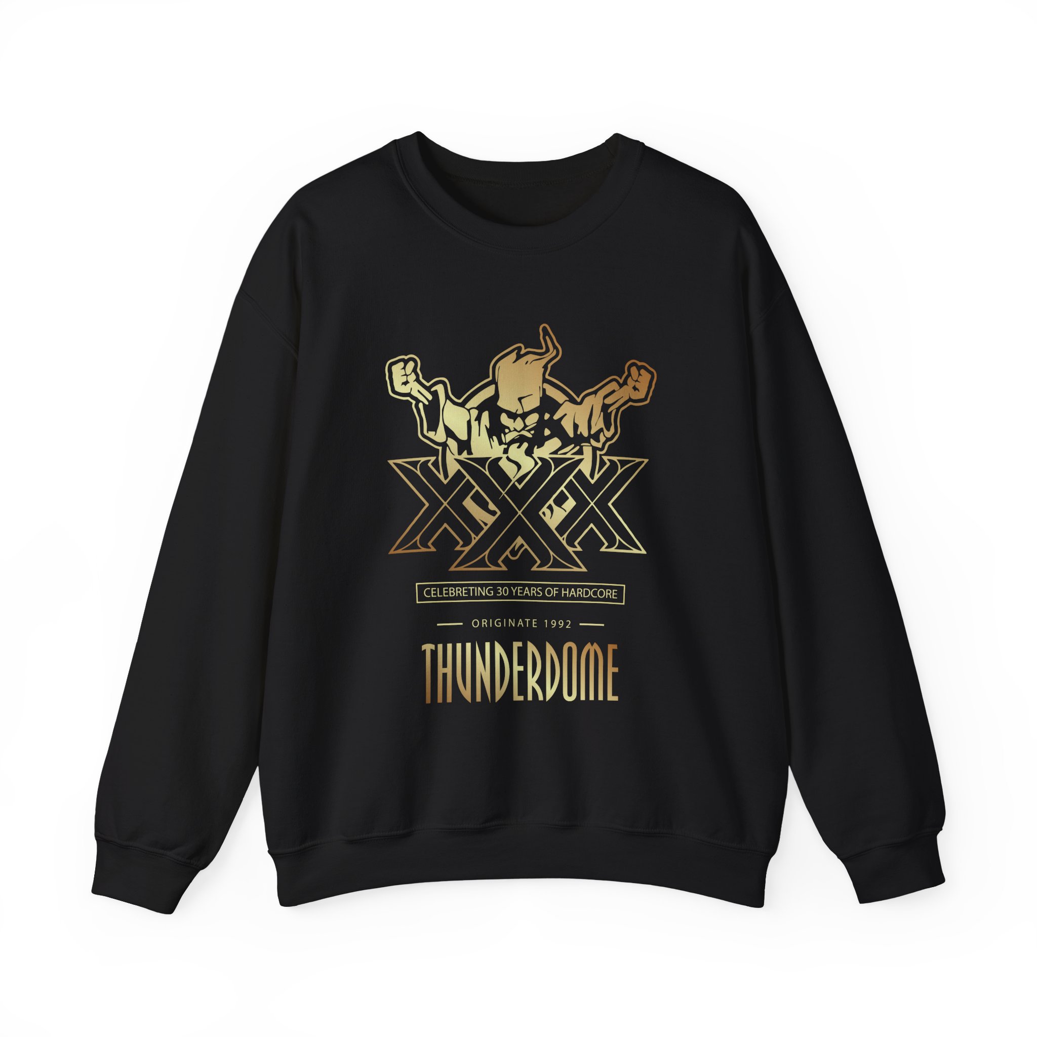 The Gildan 18000 sweatshirt is a Thunderdome 30 Years of Hardcore unisex heavy blend crewneck made from a 50/50 cotton-polyester fabric, combining softness with lasting durability. Its smooth surface supports crisp, vibrant prints and embroidery, while the ribbed-knit collar and reinforced cuffs help it keep its shape over time. A seamless body design reduces irritation and adds to overall comfort. Practical, sturdy, and print-friendly, the Gildan 18000 sweatshirt remains a top choice for custom apparel.
