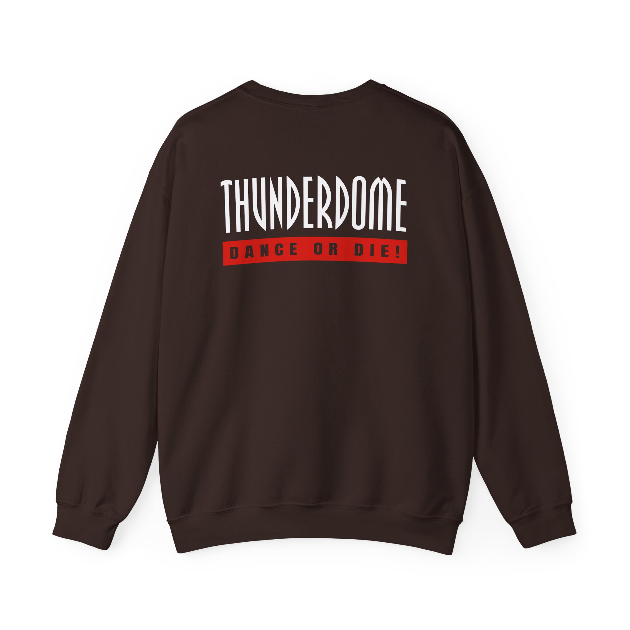 The Gildan 18000 sweatshirt is a Thunderdome Dance Or Die unisex heavy blend crewneck made from a 50/50 cotton-polyester fabric, combining softness with lasting durability. Its smooth surface supports crisp, vibrant prints and embroidery, while the ribbed-knit collar and reinforced cuffs help it keep its shape over time. A seamless body design reduces irritation and adds to overall comfort. Practical, sturdy, and print-friendly, the Gildan 18000 sweatshirt remains a top choice for custom apparel.