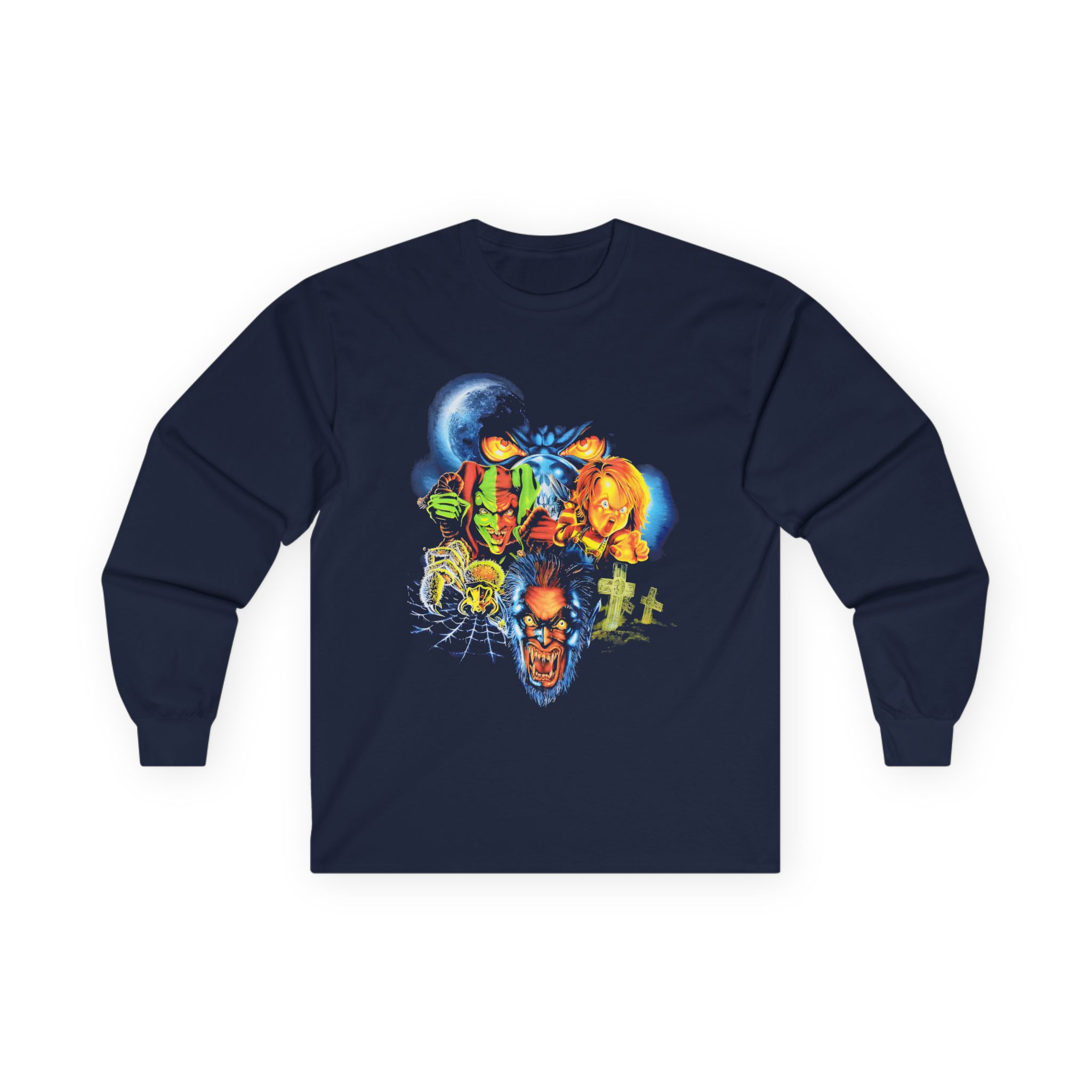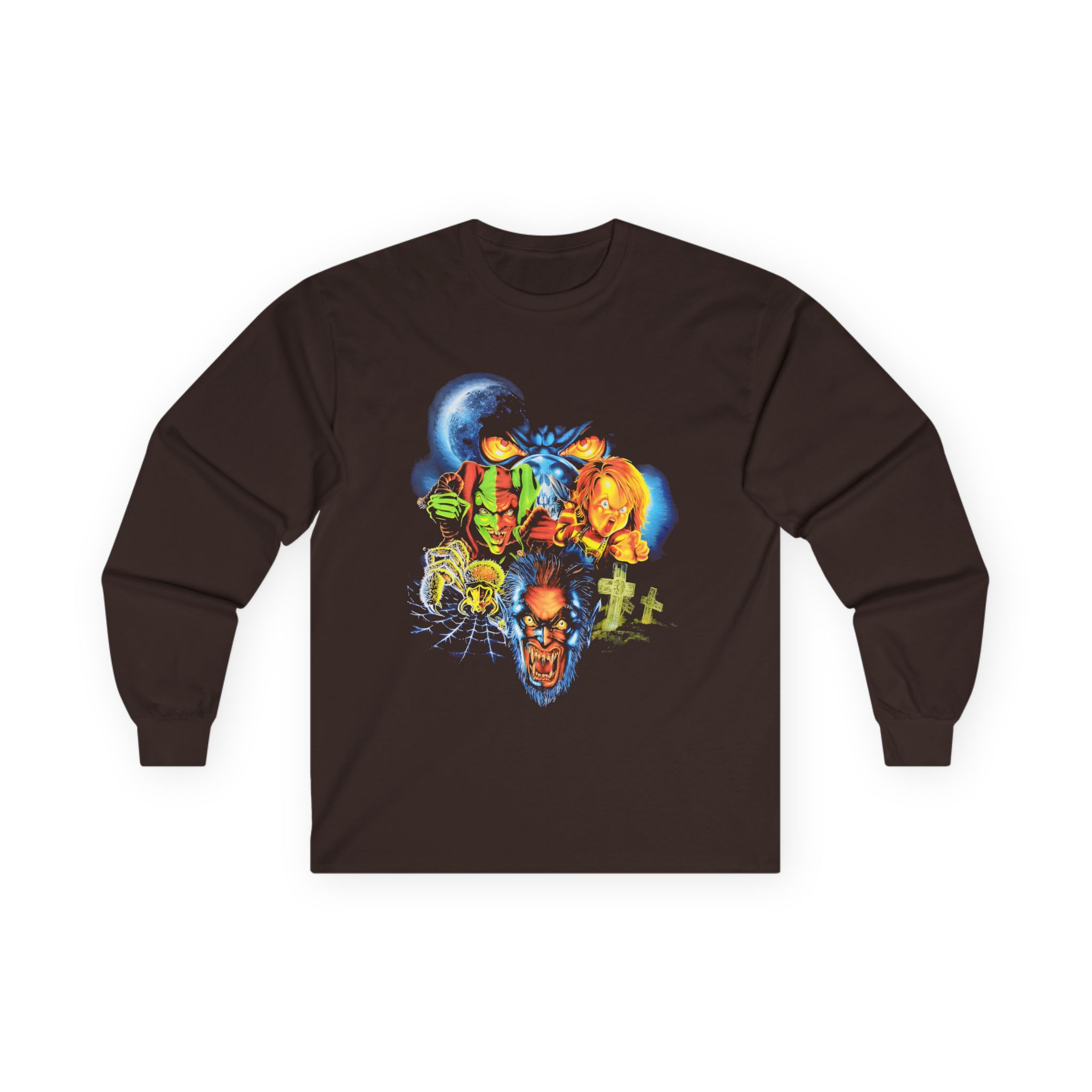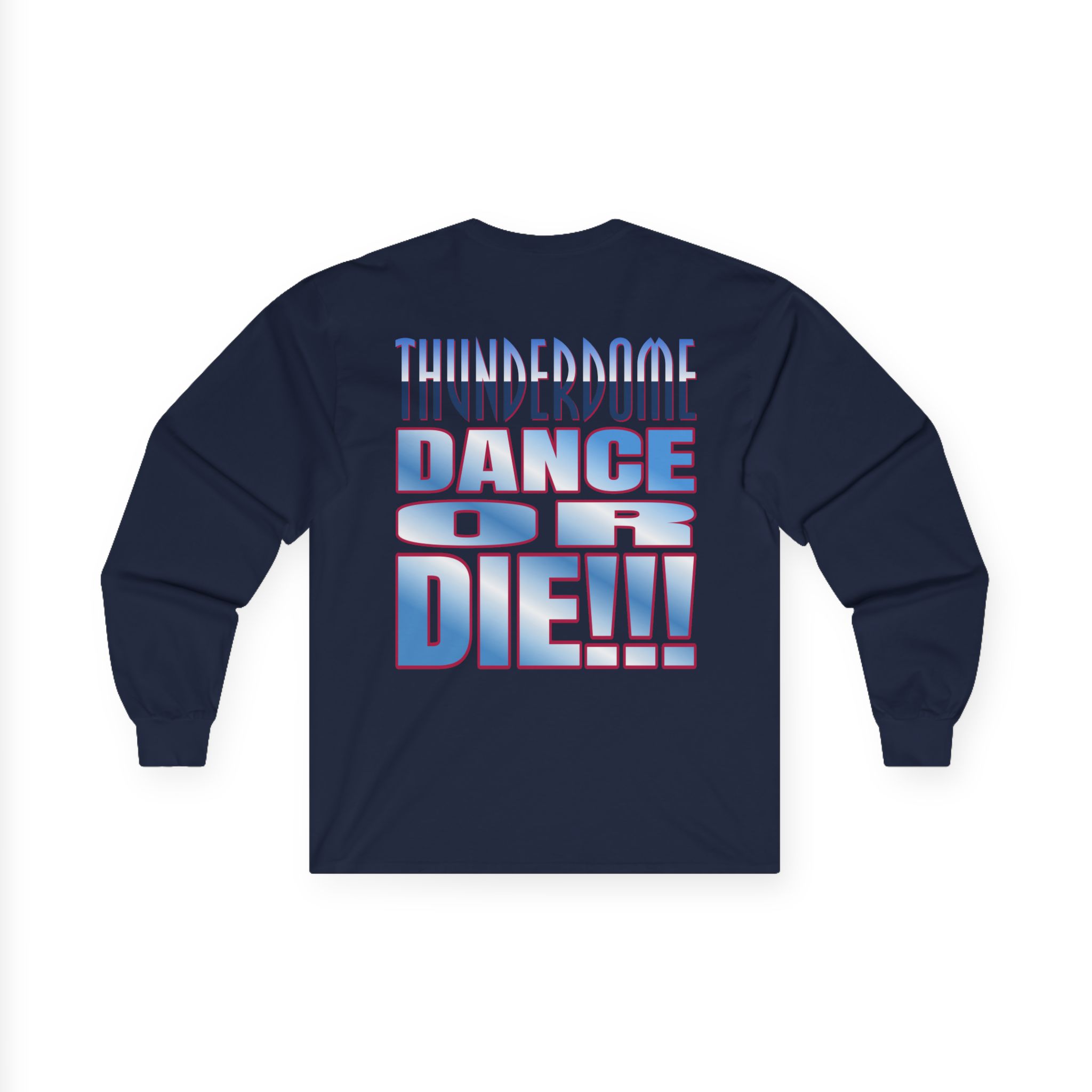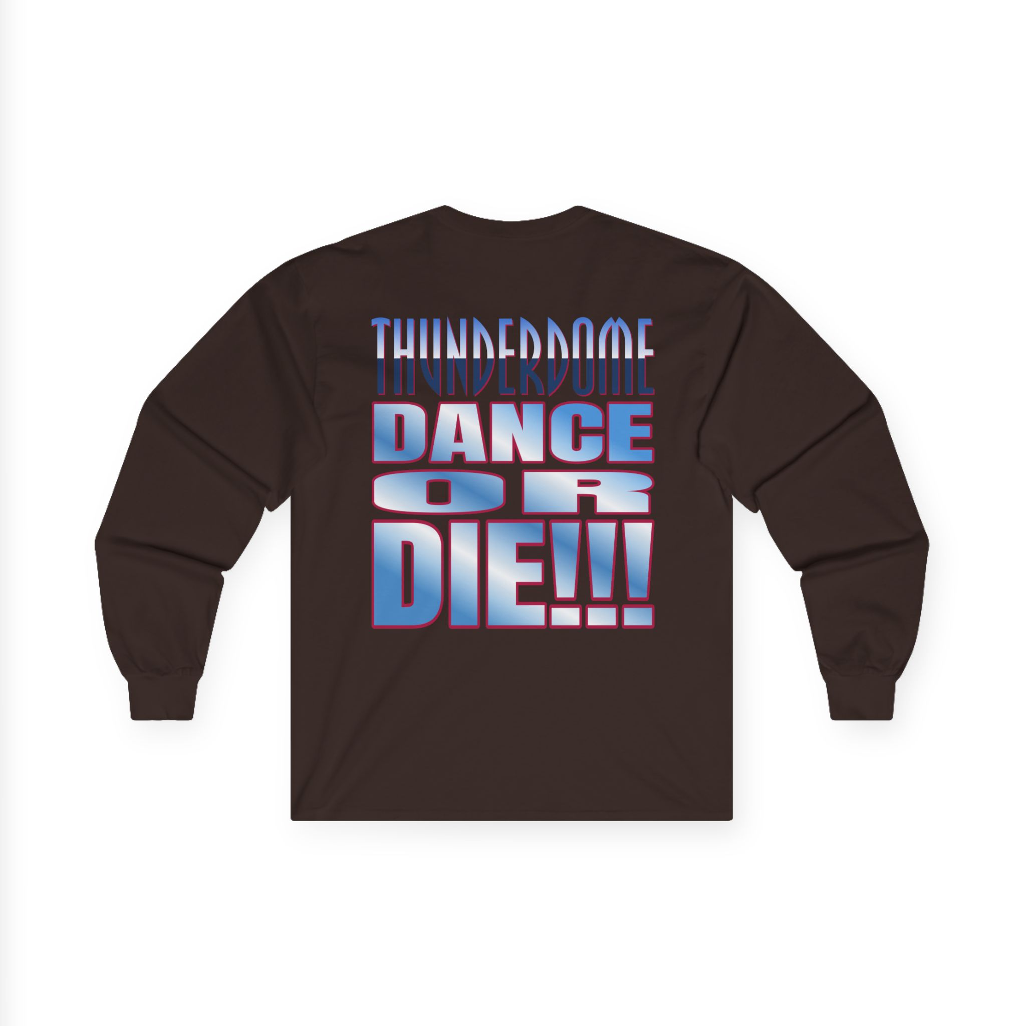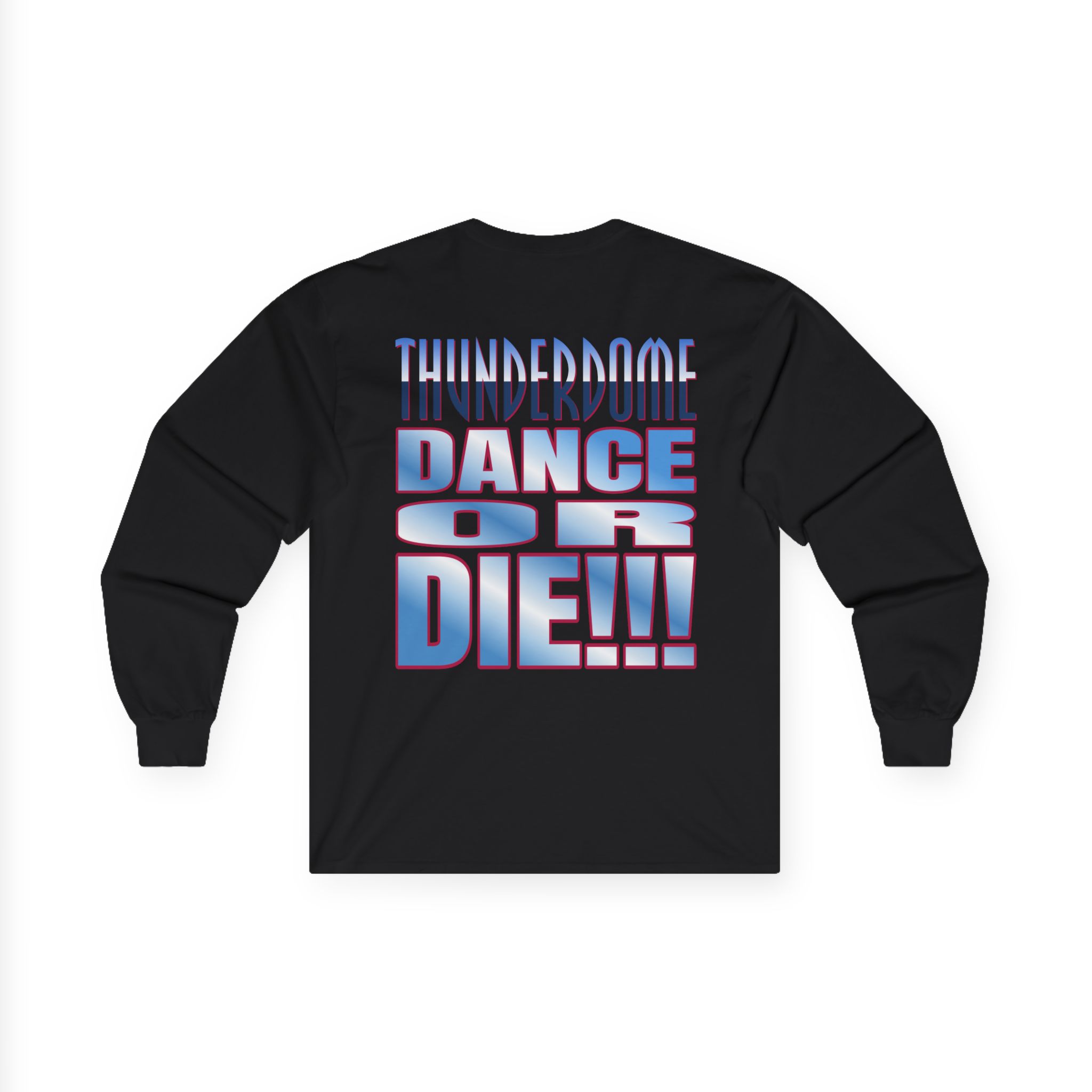 This Thunderdome Dance Or Die long-sleeve tee brings vintage concert vibes to everyday wear. Soft yet substantial cotton and a classic, slightly boxy fit create a lived-in feel that layers well under jackets r stands alone. The front art—bold mirrored sunglasses, a painted blue nose and red lips—feels like a snapshot from an ’80s tour poster. Wear it to record-store hangs, low-key gigs, or when you want a guarded nod to music history without shouting. It’s the kind of shirt that feels like it already remembers a hundred nights out.