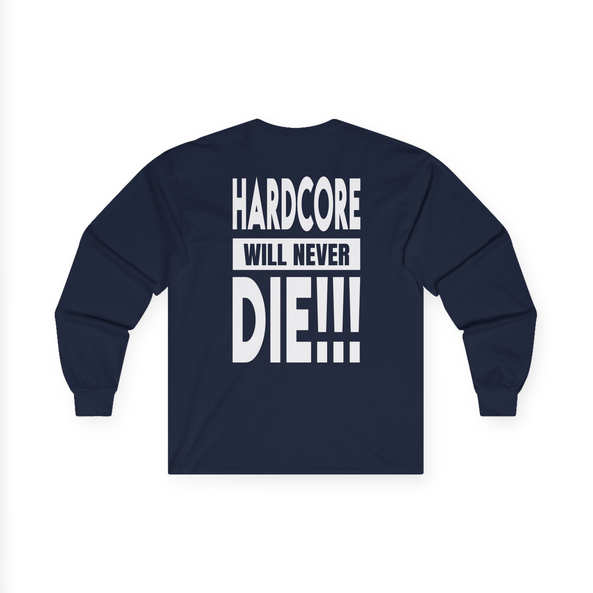 This Thunderdome Hardcore Will Never Die long-sleeve tee brings vintage concert vibes to everyday wear. Soft yet substantial cotton and a classic, slightly boxy fit create a lived-in feel that layers well under jackets r stands alone. The front art—bold mirrored sunglasses, a painted blue nose and red lips—feels like a snapshot from an ’80s tour poster. Wear it to record-store hangs, low-key gigs, or when you want a guarded nod to music history without shouting. It’s the kind of shirt that feels like it already remembers a hundred nights out.