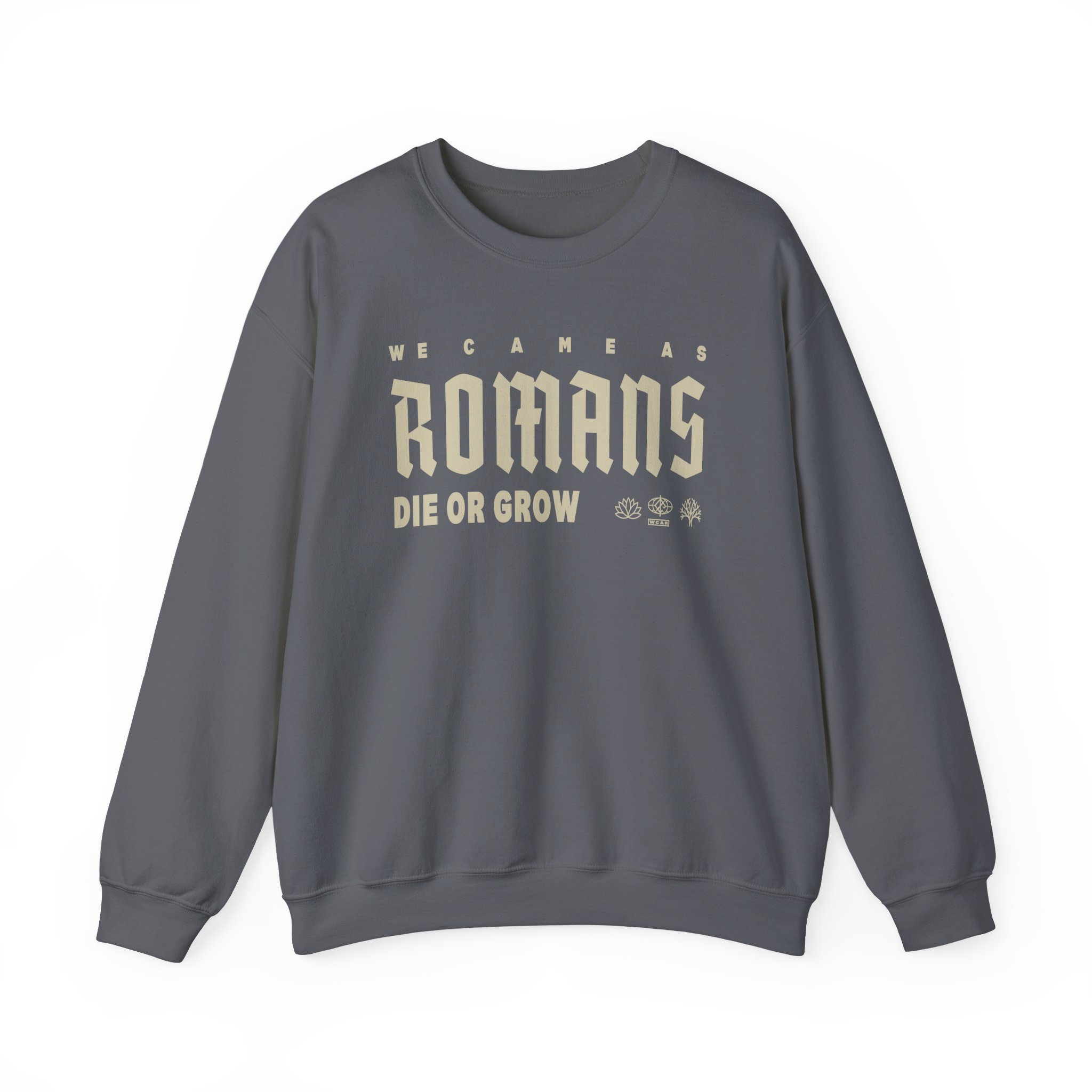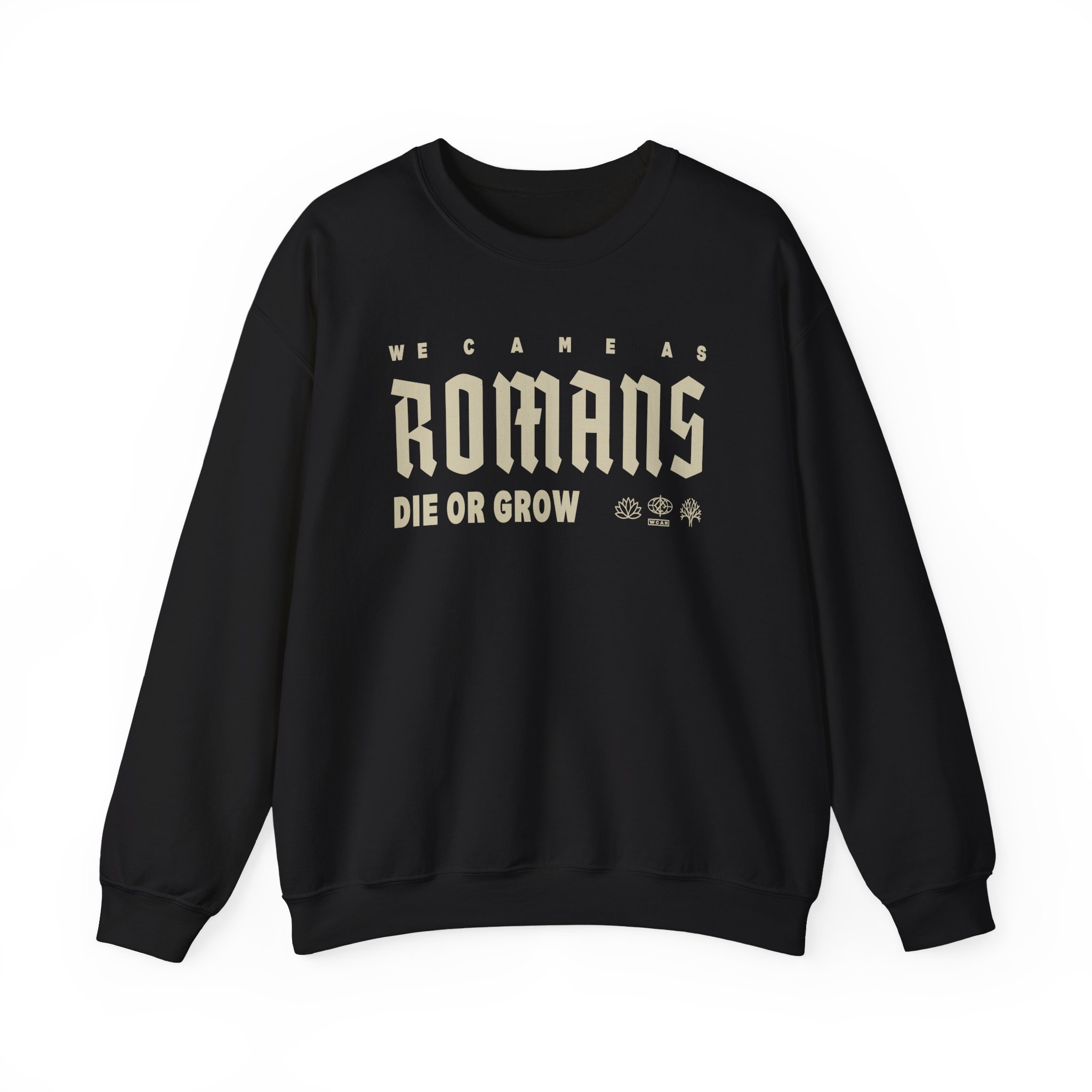 The Gildan 18000 sweatshirt is a We Came as Romans Die or Grow unisex heavy blend crewneck made from a 50/50 cotton-polyester fabric, combining softness with lasting durability. Its smooth surface supports crisp, vibrant prints and embroidery, while the ribbed-knit collar and reinforced cuffs help it keep its shape over time. A seamless body design reduces irritation and adds to overall comfort. Practical, sturdy, and print-friendly, the Gildan 18000 sweatshirt remains a top choice for custom apparel.