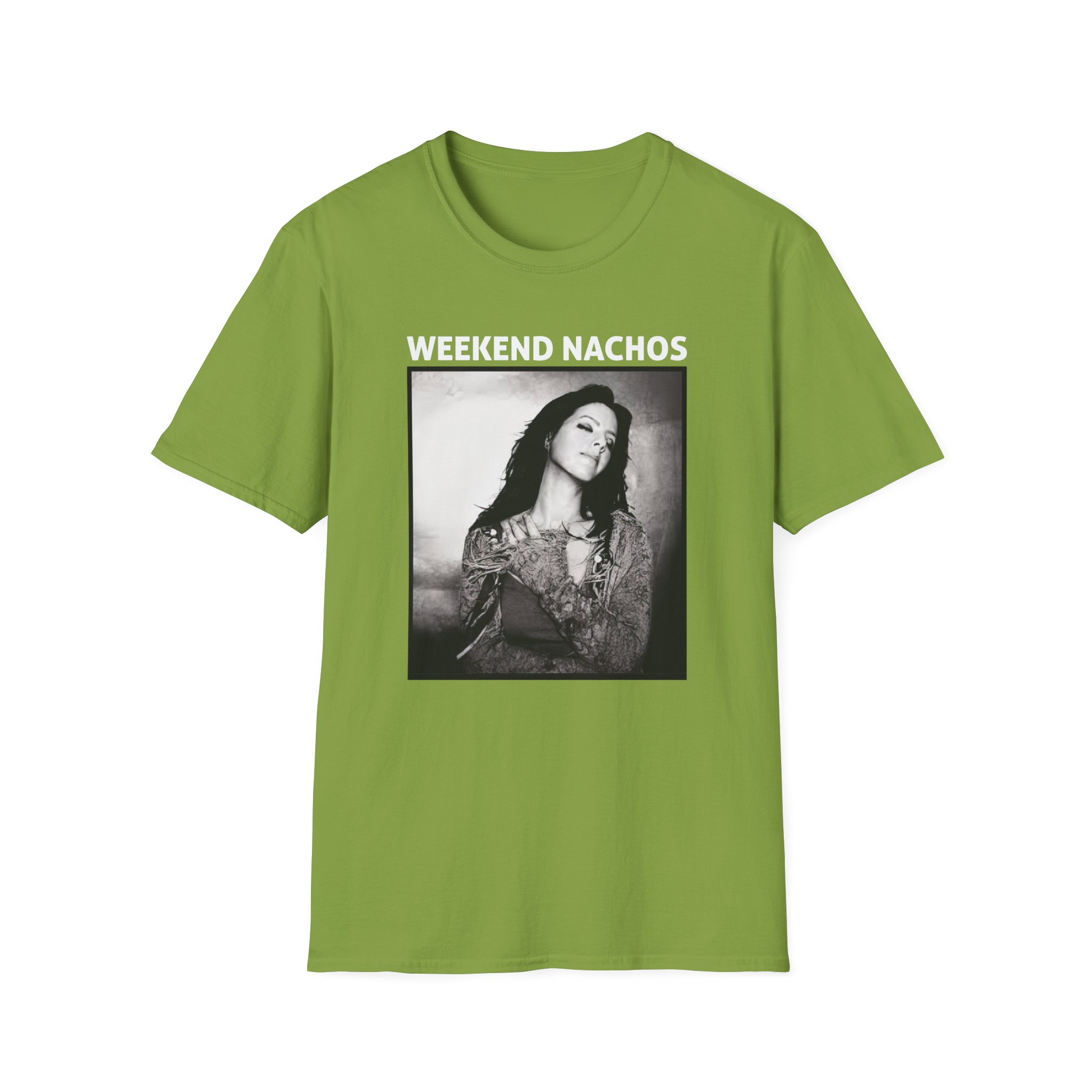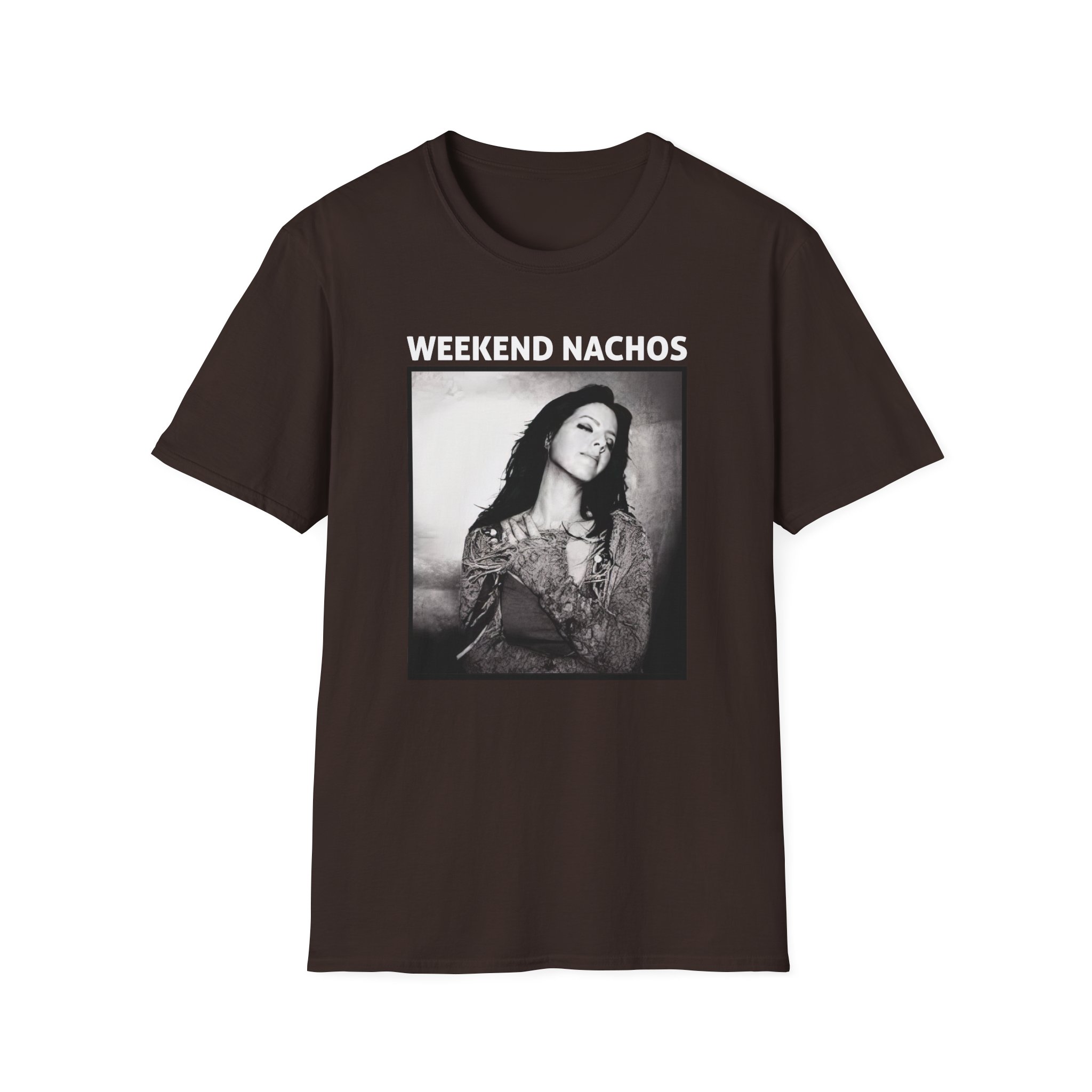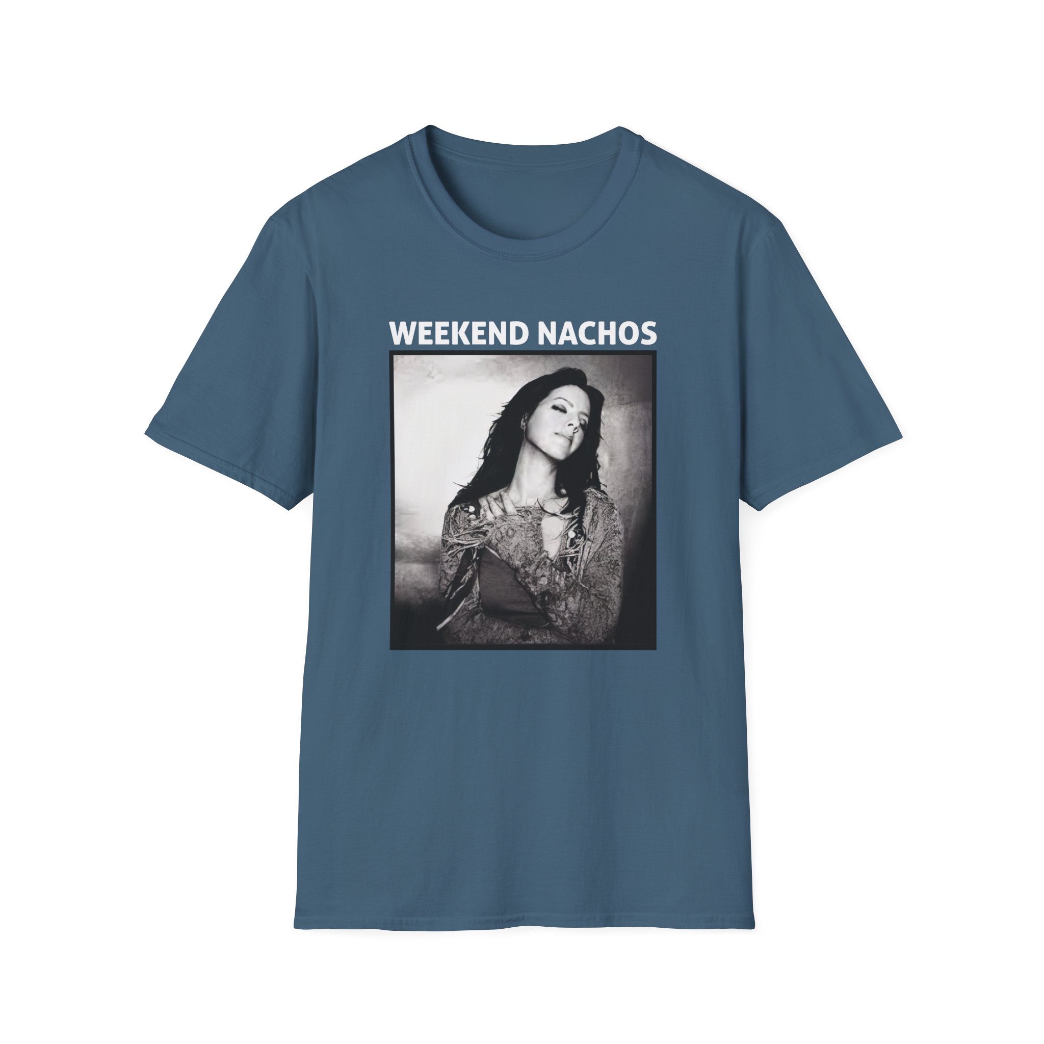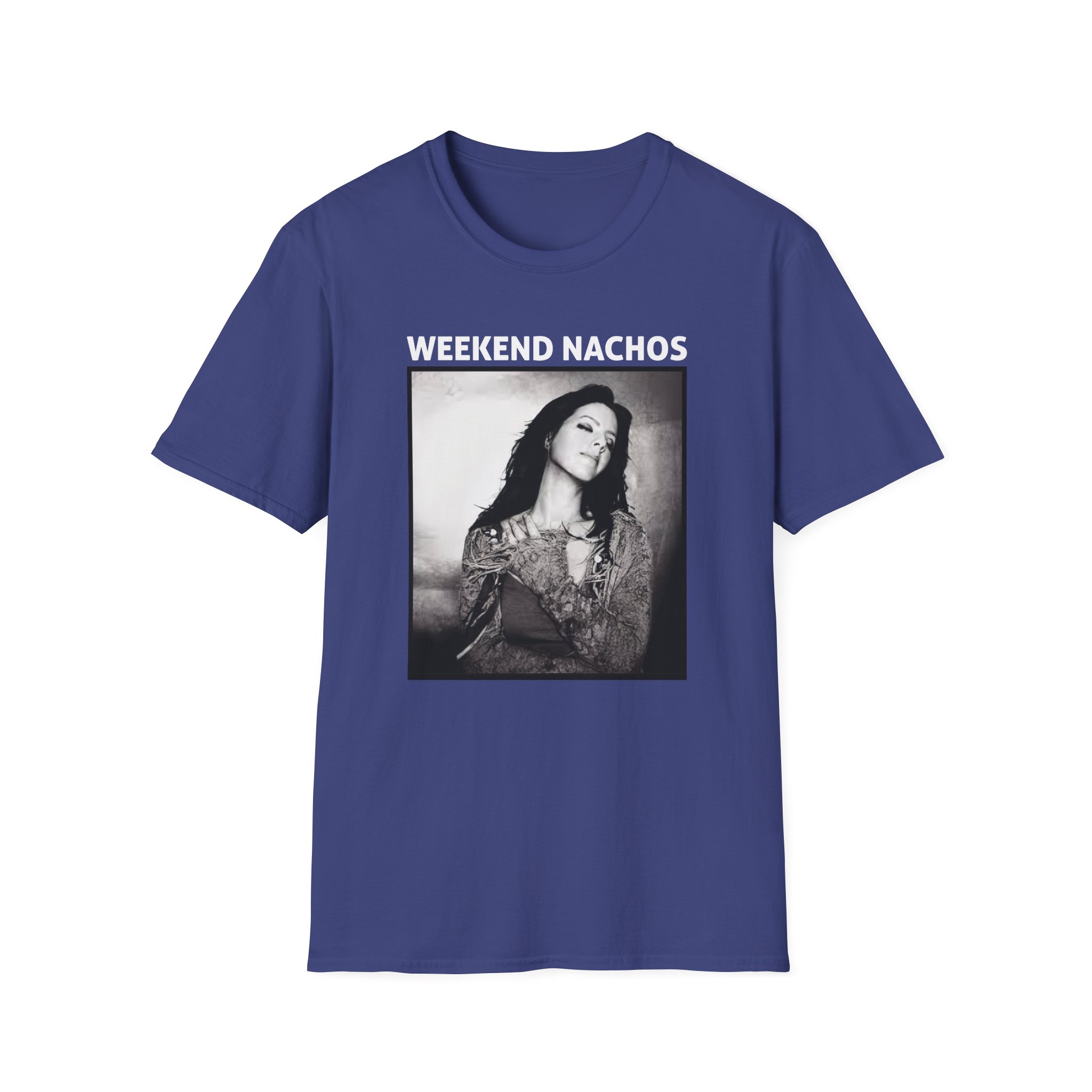 This lightweight, classic-fit tee carries a vintage tour-shirt look with hand-lettered script reading “Weekend Nachos Sarah” Soft ring-spun cotton and smooth printing make the graphic sit cleanly on the chest. Wear it to backyard shows, late-night drives, or when you want to bring a bit of road-worn Americana to a simple outfit. The crew neckline and tubular knit keep the silhouette neat, while shoulder tape and a ribbed collar hold the shape after many washes. It’s breathable, low-profile, and made to age with you—subtle black flecks appear on the Natural color for a lived-in feel.